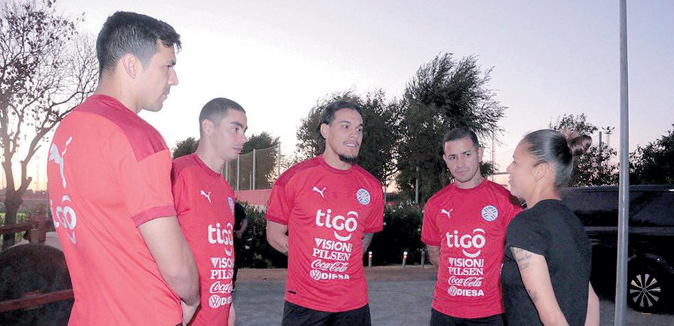 La selección paraguaya absoluta de fútbol tuvo una excelente recepción en su estadía en Sevilla. Ayer una comitiva paraguaya compuesta por jóvenes y niños ofreció música y danza a la Albirroja, que mañana enfrenta en amistoso a Marruecos. Otra grata visita fue la presencia de Pirayú Martínez, estrella de la selección guaraní y jugadora destacada del Sevilla, a los futbolistas. En la imagen conversa con Fabián Balbuena, Miguel Almirón, Gustavo Gómez y Derlis González. LUIS OJEDA Sol ENZO GIMÉNEZ Cerro Porteño JÚNIOR BARRETO Gral. Caballero ALEXIS DUARTE Cerro Porteño ALAN RODRÍGUEZ Cerro Porteño BRAIAN SAMUDIO Cerro Porteño ALEJANDRO SAMUDIO Ameliano RODRIGO ROJAS Sol MATHÍAS MARTÍNEZ Nacional GUARANÍ SOL DE AMÉRICA NACIONALAMELIANO 12 DE OCTUBRE RESISTENCIA 002 2 1 03 0 0 TACUARY 5 CERRO PORTEÑO 2 GUAIREÑA GRAL. CABALLERO MIÉRCOLES 12 DE OCTUBRE LIBERTAD 19:30 MANUEL FERREIRA ANTONIO GALEANO Cerro Porteño OLIMPIA FRANCO COSTA Gral. Caballero