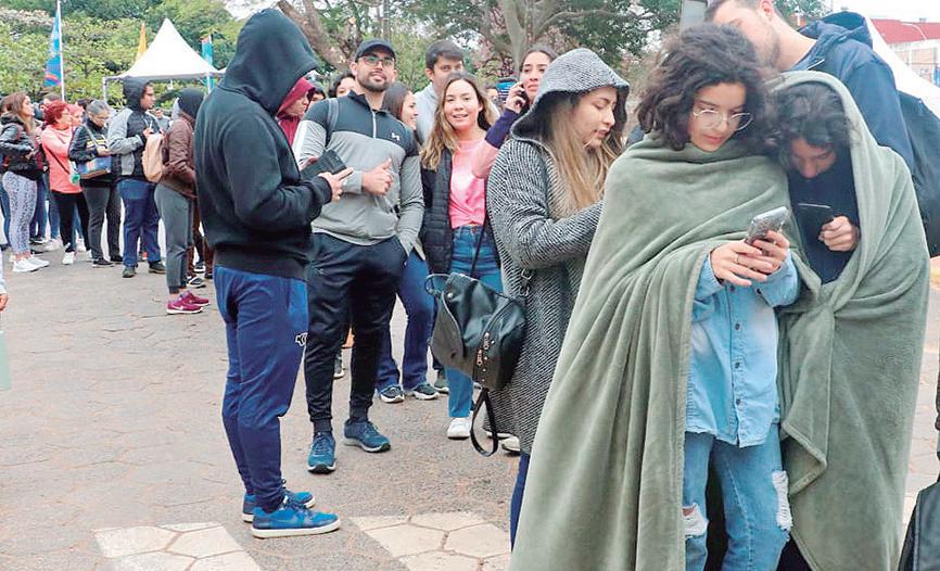 El fresco de la tarde no fue impedimento para que el público espere bien abrigado el momento del ingreso al polideportivo Arena SND, que estuvo repleto. Muchos quedaron afuera sin poder disfrutar del gran partido.