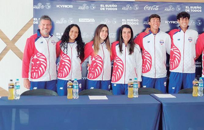 ladrillo del Rakiura Resort, el tenis acude desde hoy a su cita suramericana, donde el team Paraguay dará pelea por el podio con Daniel Vallejo, Martín Vergara y Juan Borba en varones, junto con Veró nica Cepede, Lara Escau riza y Leyla Brítez en damas. Durante el acto oficial de presentación de los equipos, Julio Ferrari, presidente de la Asociación Paraguaya de Tenis (APT), señaló: “Estoy seguro que estos seis chicos, en la modalidad de singles, dobles y mixtos, van a dar una gran batalla y esperamos culminar la semana con algu nas medallas. Estoy seguro de que estamos presentando el mejor equipo paraguayo posi ble, gente con experiencia y juventud”.