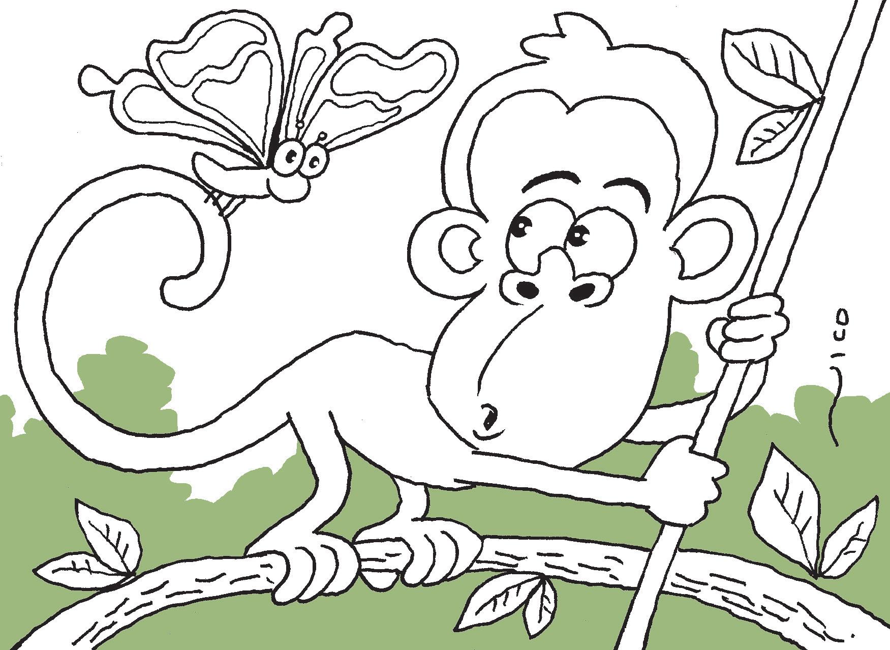 El monito estaba saltando de rama en rama y de pronto...una mariposa se puso a jugar con su larga cola. Pinta esta escena con los colores que más te gustan.