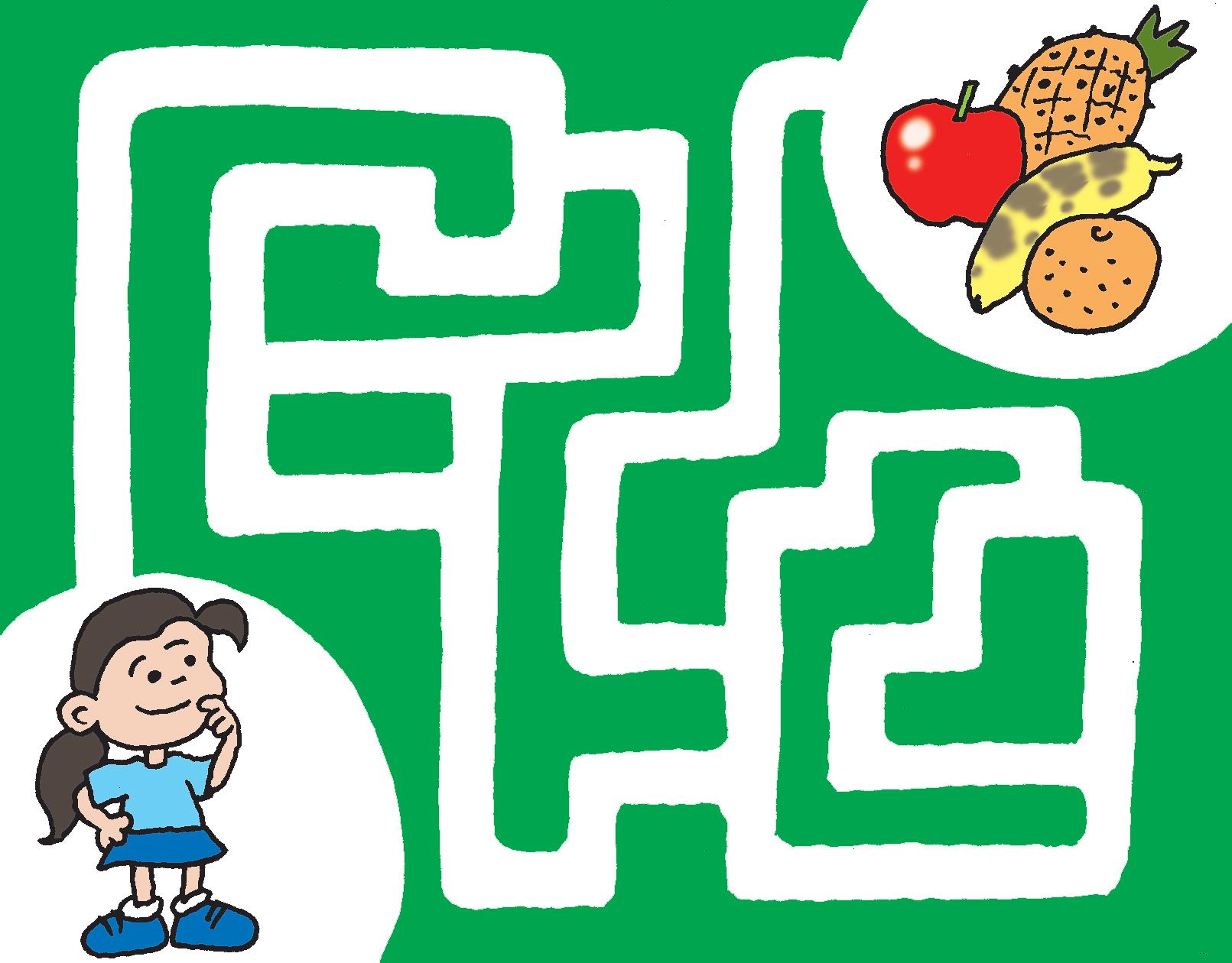 Valeria dijo que haría una rica ensalada de frutas para el postre.¿Le podrías indicar el camino más corto para llegar hasta las frutas?