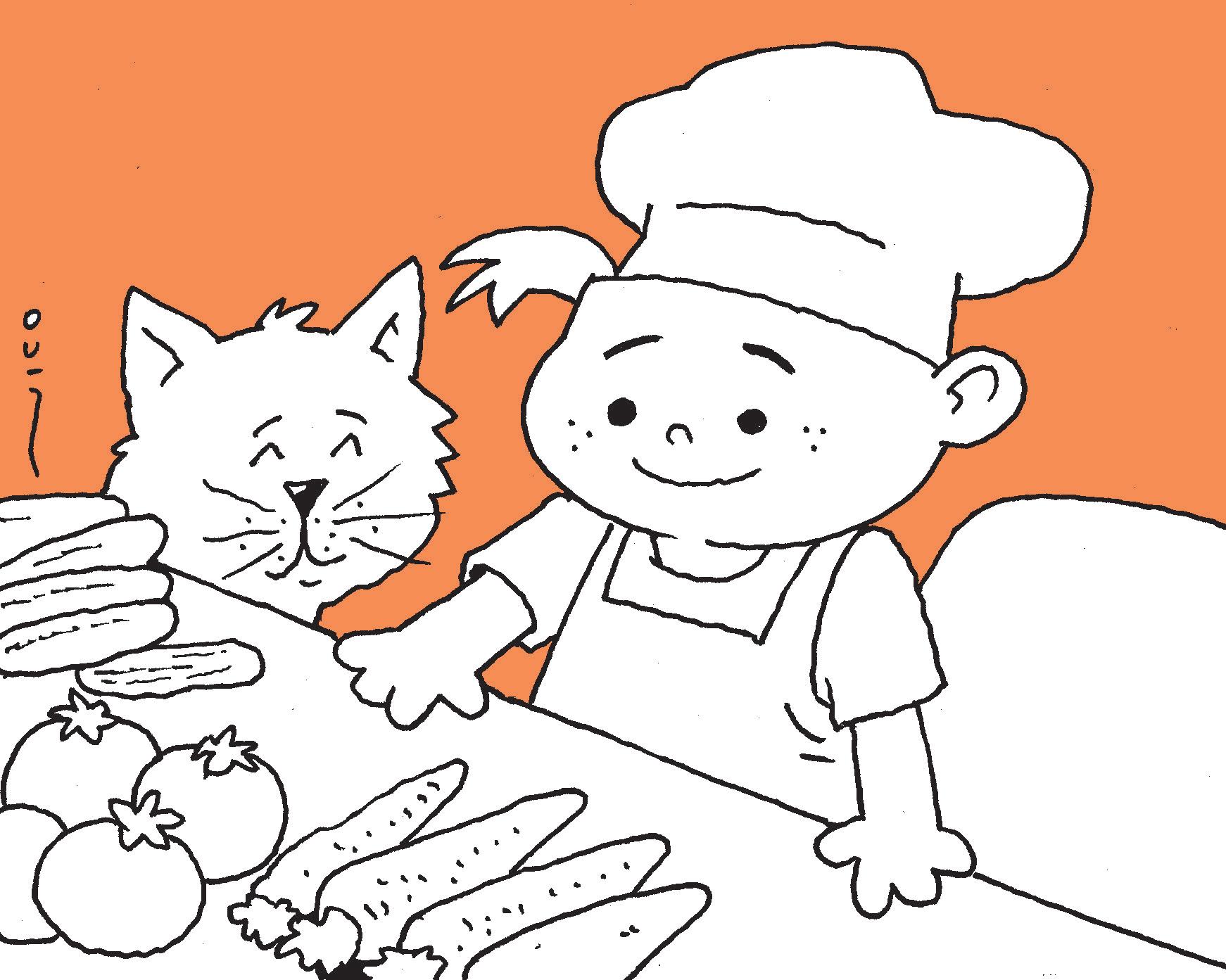 Toñy tiene que preparar una rica ensalada...¿con qué puede empezar? Pinta la escena con los colores que más te gusten.
