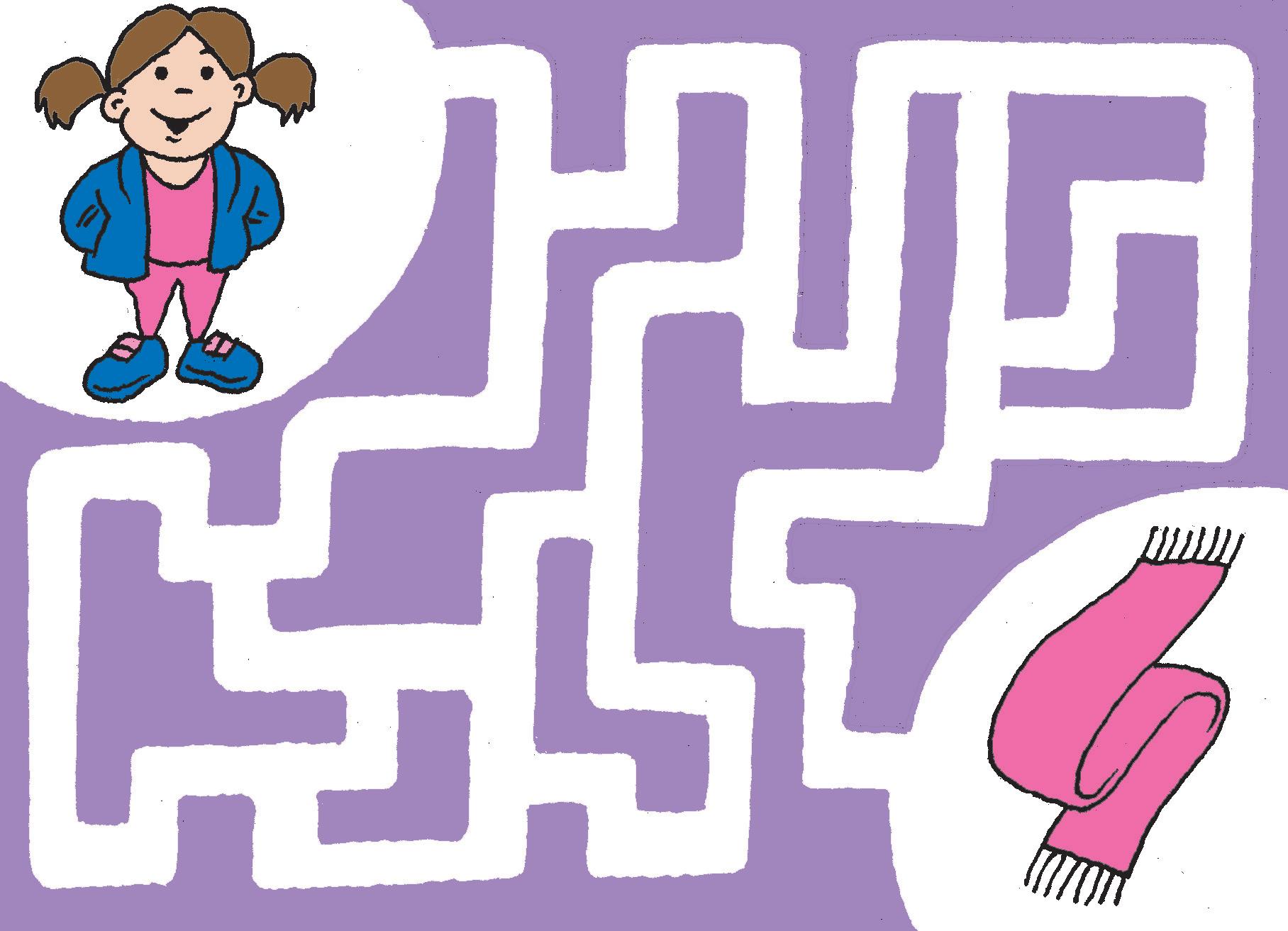 Anita está lista para salir, irá a caminar en la plaza, pero como hace frío, su mami le dijo que se ponga una bufanda. Indícale el camino más corto para llegar hasta su bufanda.