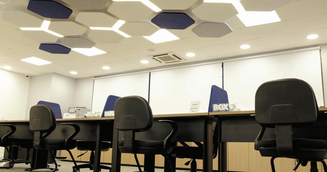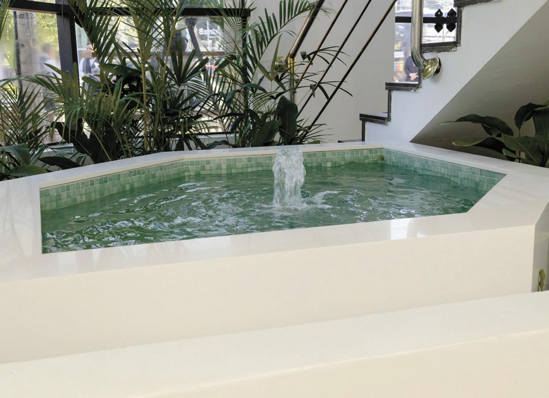 fuente de agua, sillas masajeadoras y un aroma exclusivo del lugar. El arte también se hace presente a través de un gran mural firmado por la artista paraguaya Solana.