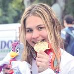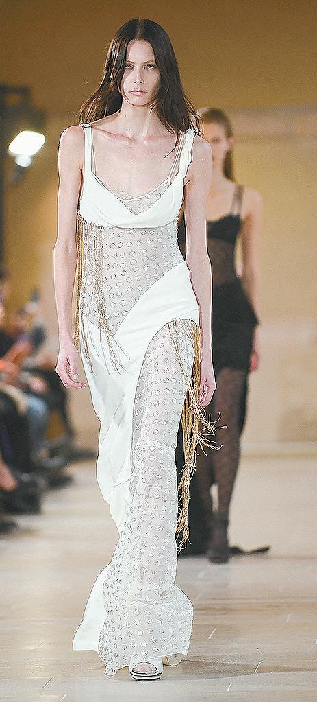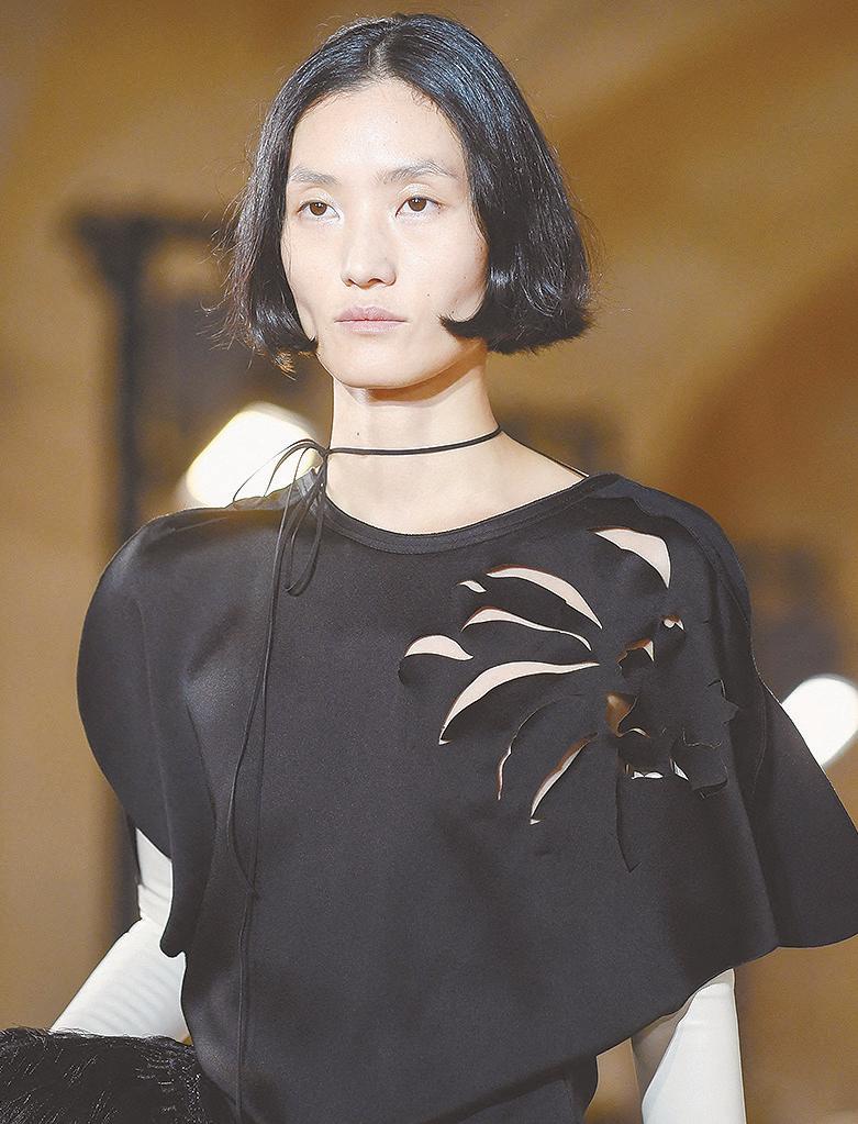 La modelo Nadia Ferreira luce una preciosa prenda tradicional durante el desfile de la artesanía paraguaya.