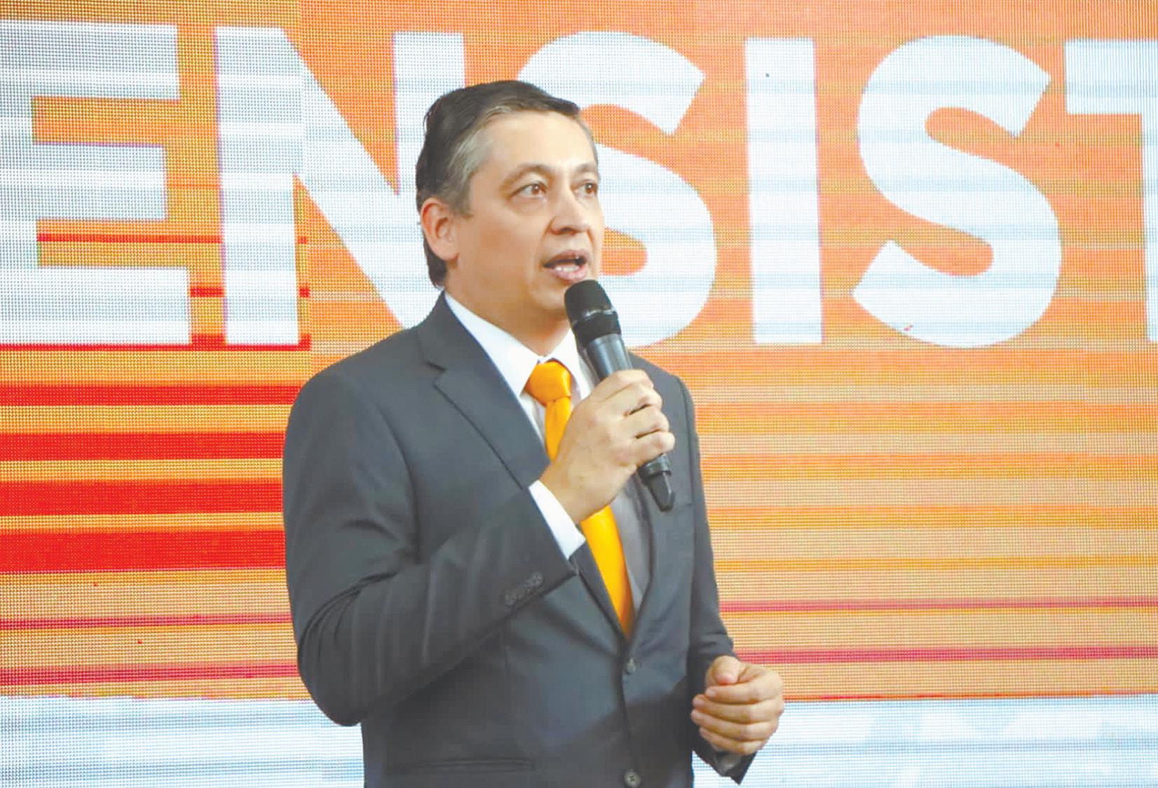 Santiago Peña, pre candidato a la Presi dencia de la República por Honor Colorado.