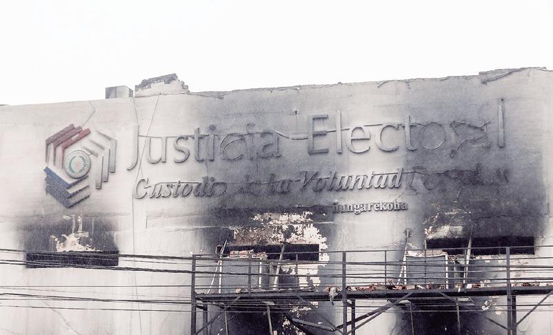 El pasado jueves un incendio de grandes proporciones afec tó a la sede del Tribunal Superior de Justicia Electoral (TSJE). Además de los daños materiales, entre ellos equipos utiliza dos para la Transmisión de Resultados Electorales Prelimi nares (TREP) y 7.000 máquinas de votación, se registró una víctima fatal, un funcionario que fue identificado como José Aníbal Ortiz, por lo que la institución declaró tres días de luto. Ante las preocupaciones en torno a cómo el siniestro podría afectar el desarrollo normal de las próximas eleccio nes internas del 18 de diciembre, desde el TSJE informaron que el grueso de las máquinas de votación no se encontra ban en medio del fuego porque una importante mayoría está resguardada en un depósito ubicado en Fernando de la Mora.