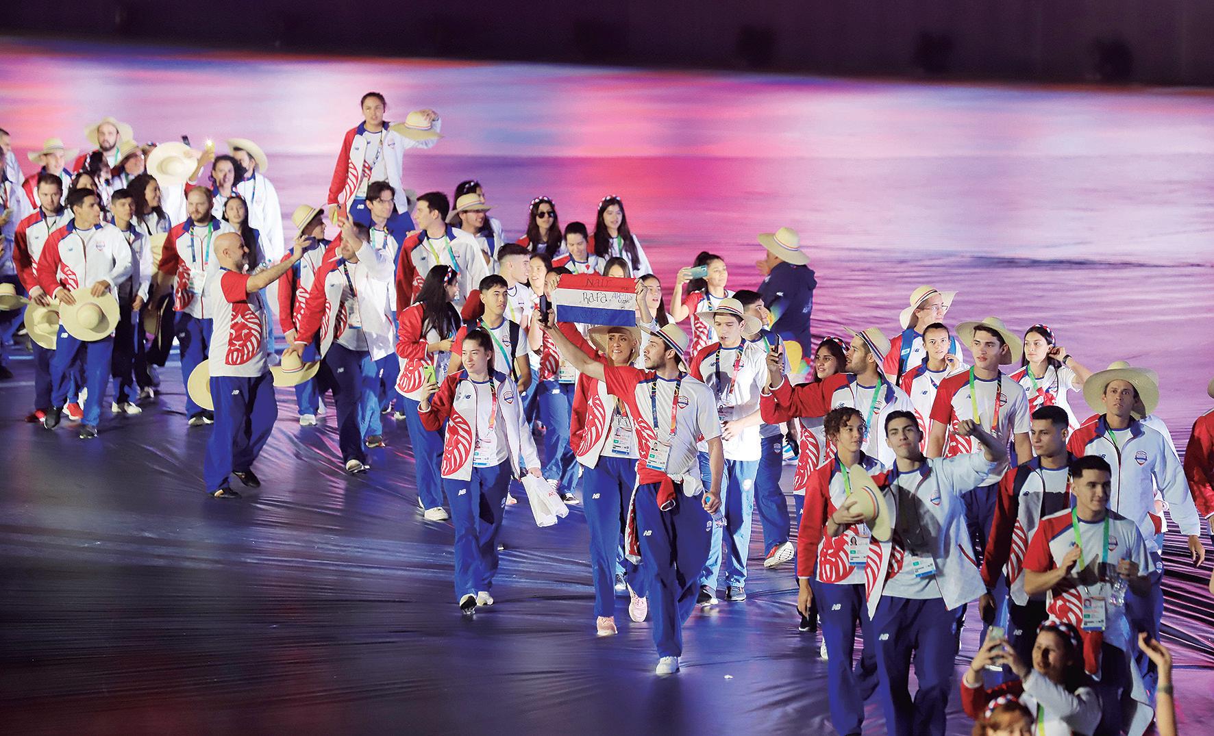 con 576 atletas de las dife rentes disciplinas deporti vas cerró el desfile de los 15 países participantes, enca bezados por los abandera dos Nicole Martínez (remo) y Fabrizio Zanotti (golf).