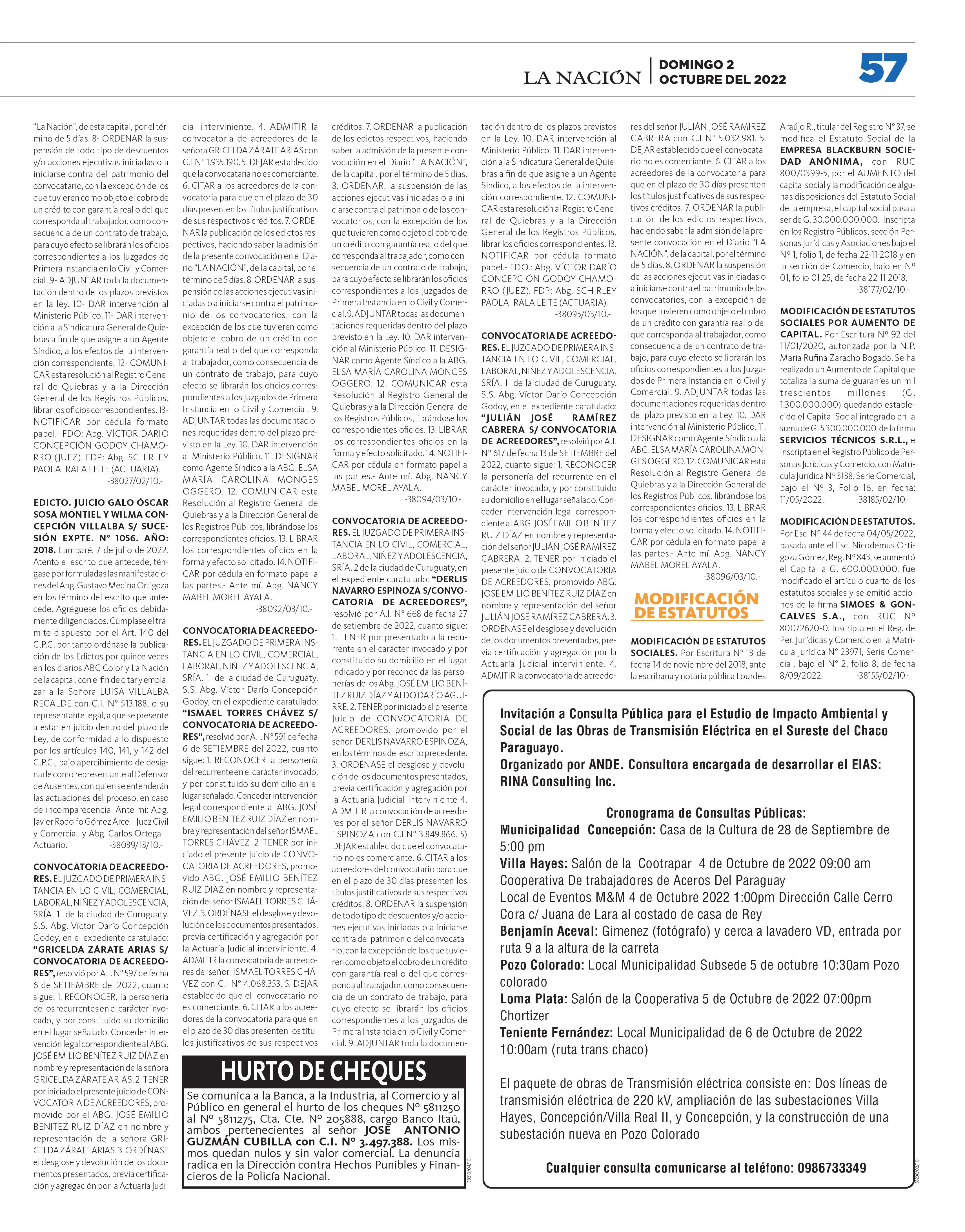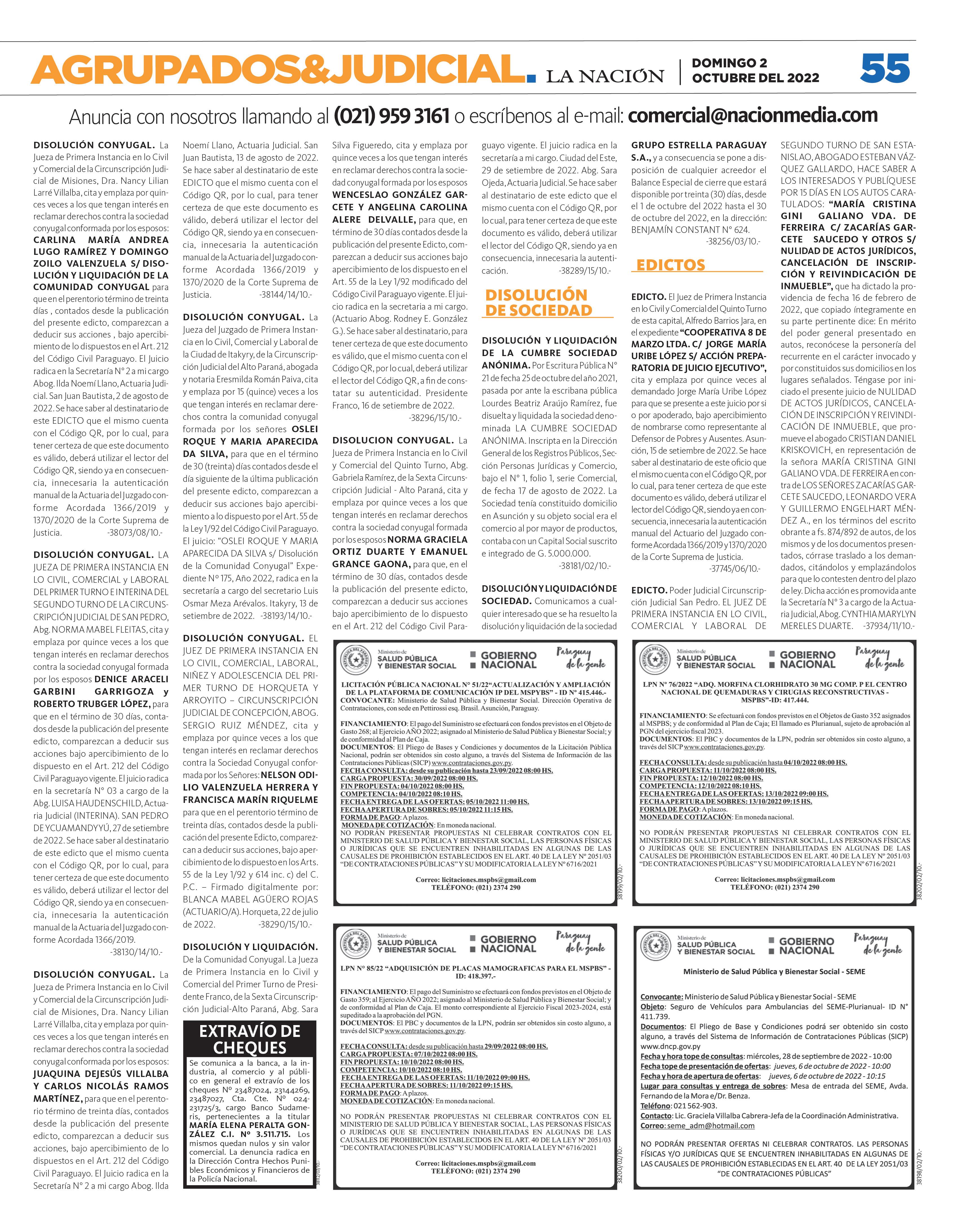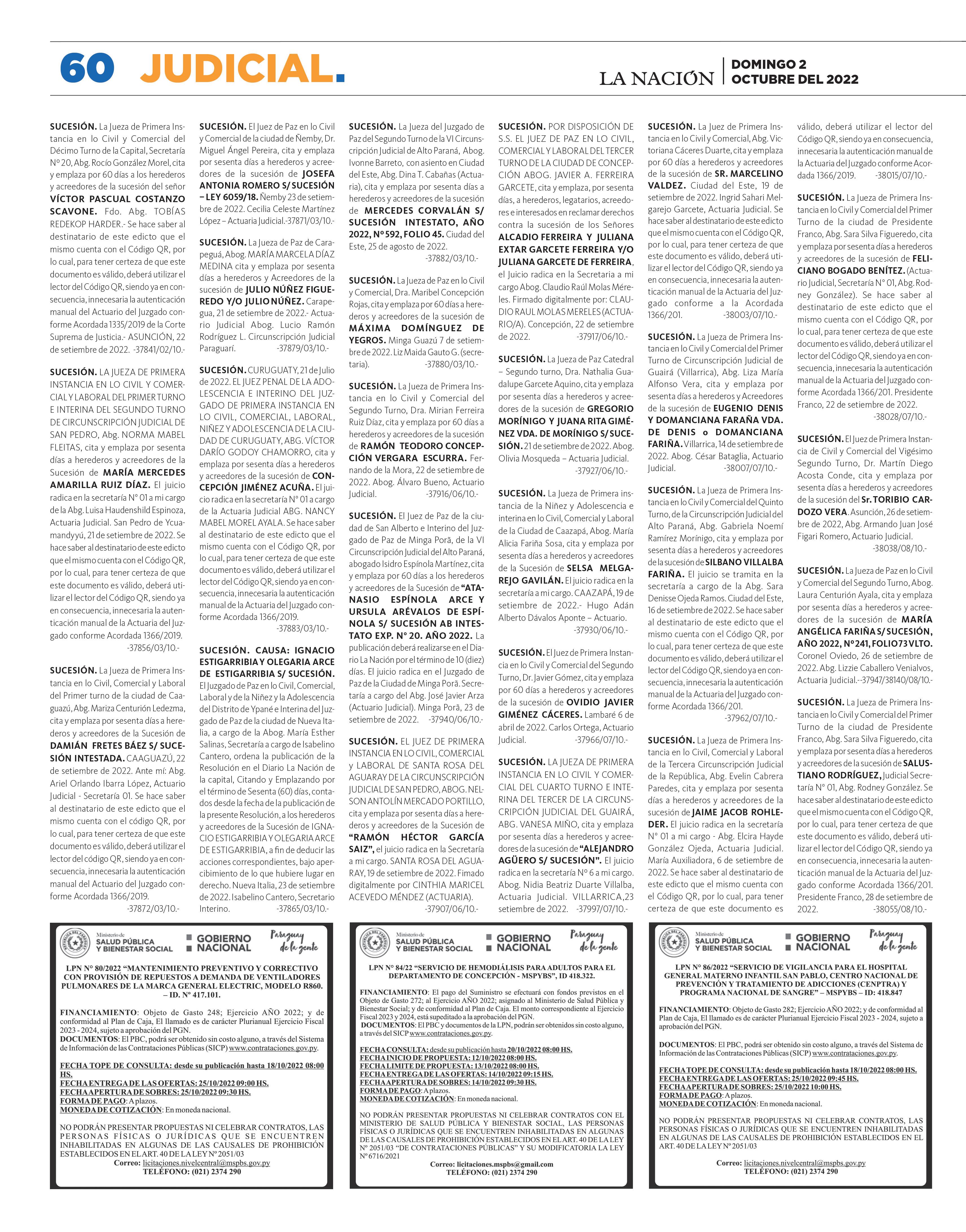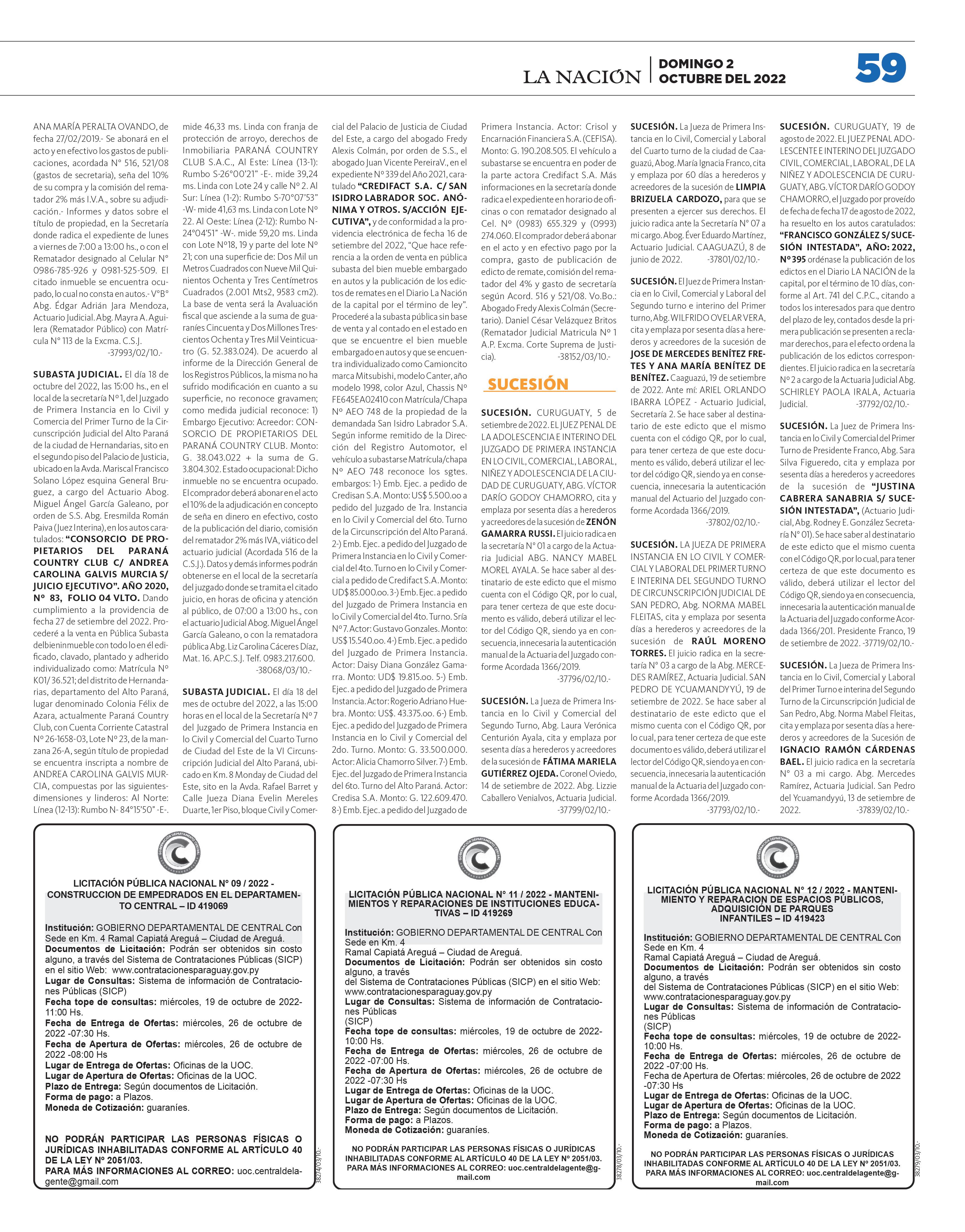 DOMINGO 2 DE OCTUBRE DEL 2022 PARAGUAY AÑO 28 · Nº 9.940 G. 10.000