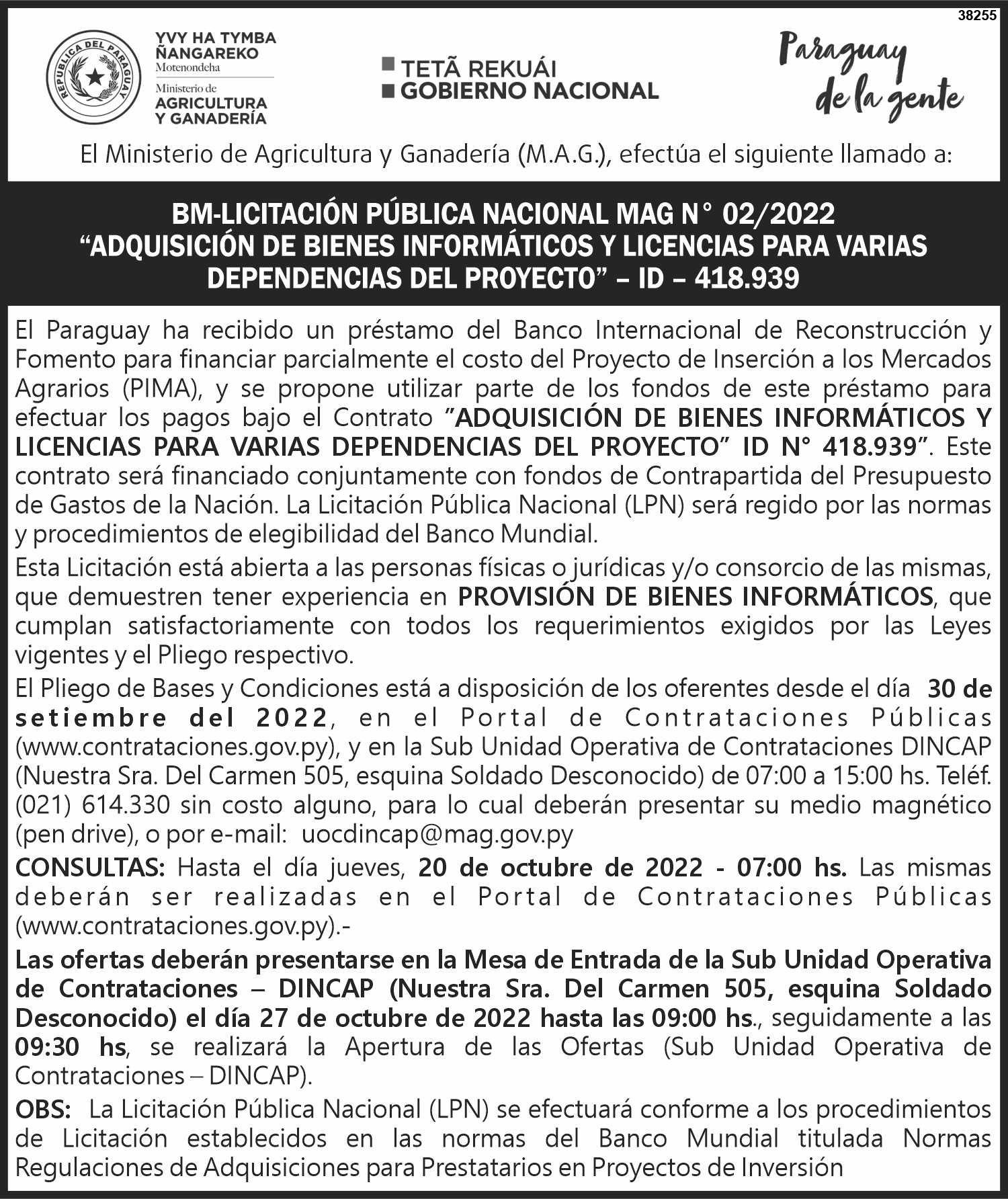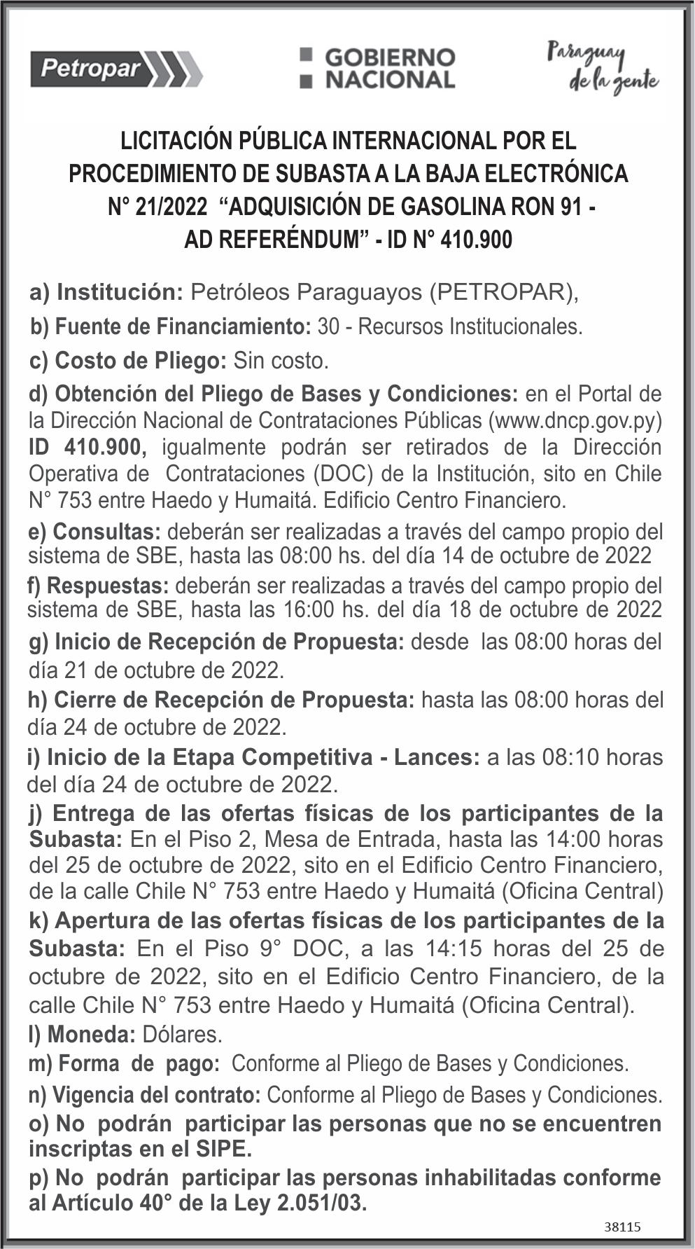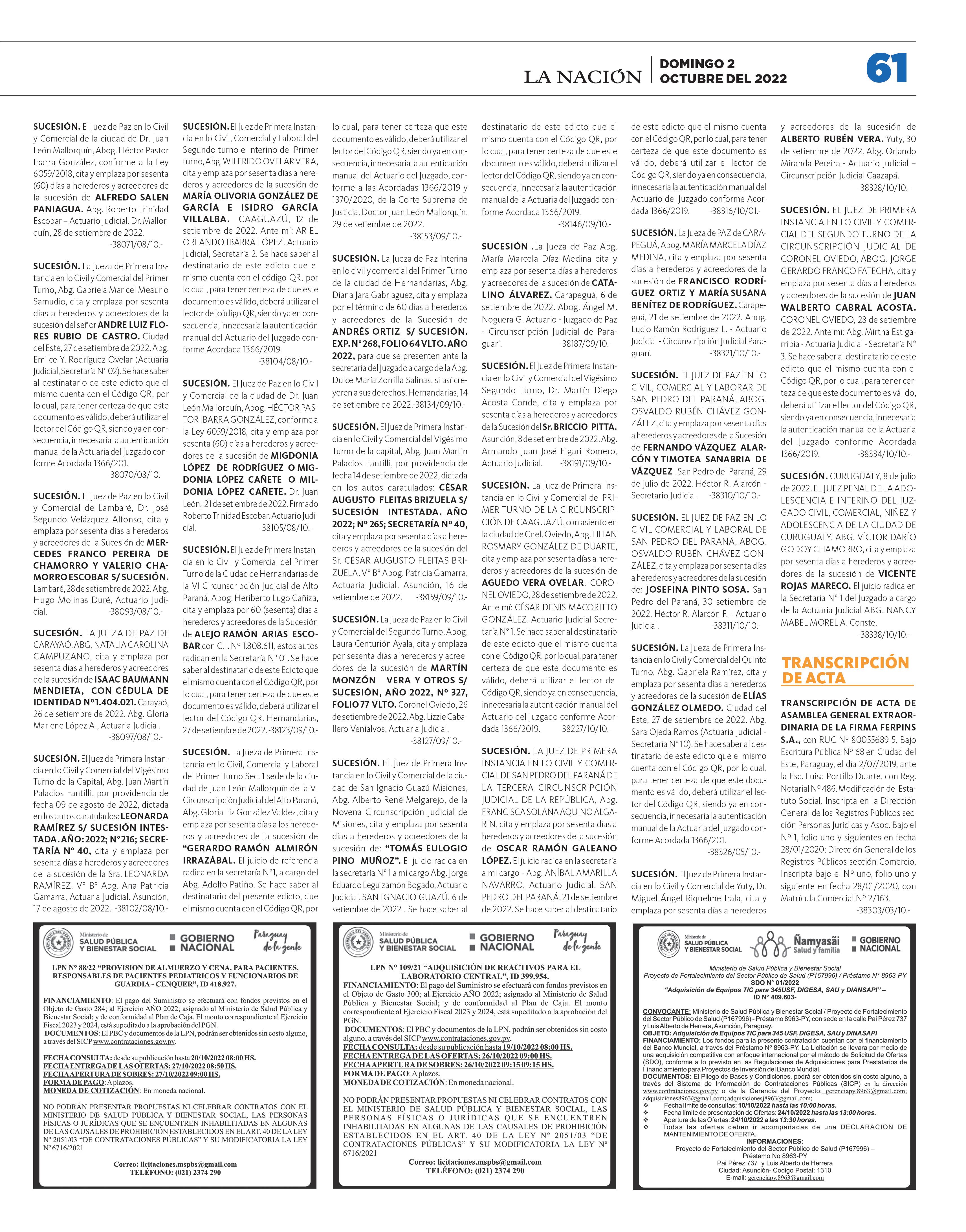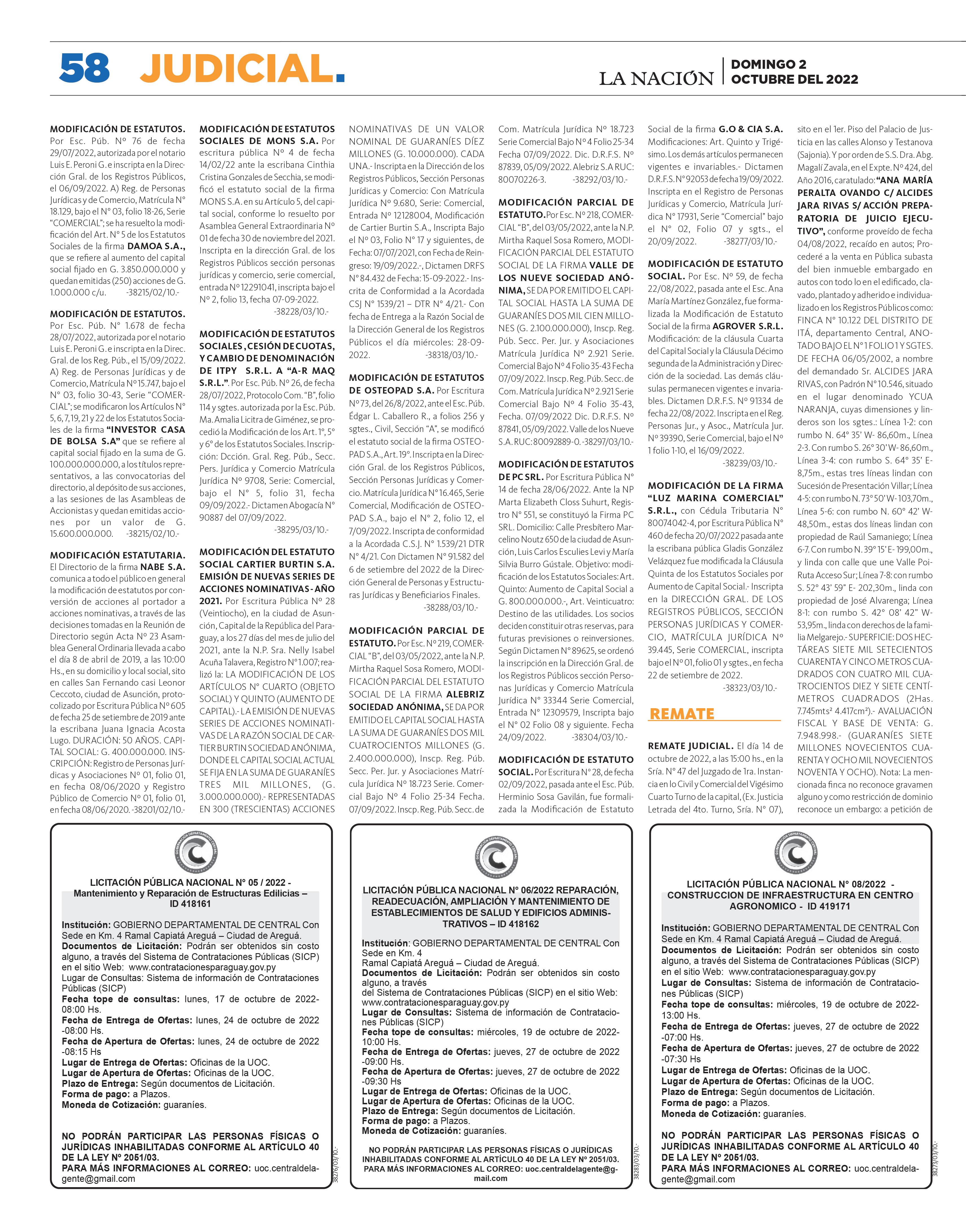 DOMINGO 2 DE OCTUBRE DEL 2022 PARAGUAY AÑO 28 · Nº 9.940 G. 10.000