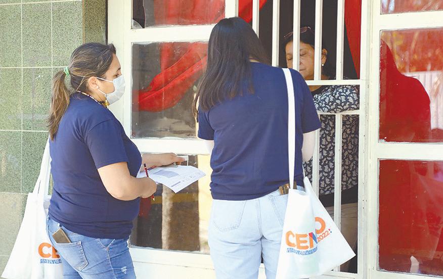 A poco más de un mes del Censo 2022 , se siguen reclu tando censistas y supervisores para alcanzar los 210.000 operadores que se necesitarán el 9 de noviembre para llevar a cabo el trabajo, pero hasta ahora solo se han inscrito 50.000 personas. Se buscará confirmar si ya superamos los 7,5 millones de habitantes, entre otros puntos relevantes que hacen al cálculo de la pobreza, el trabajo, la economía familiar, la vivienda, la mortalidad y las migraciones. P. 34 A 37