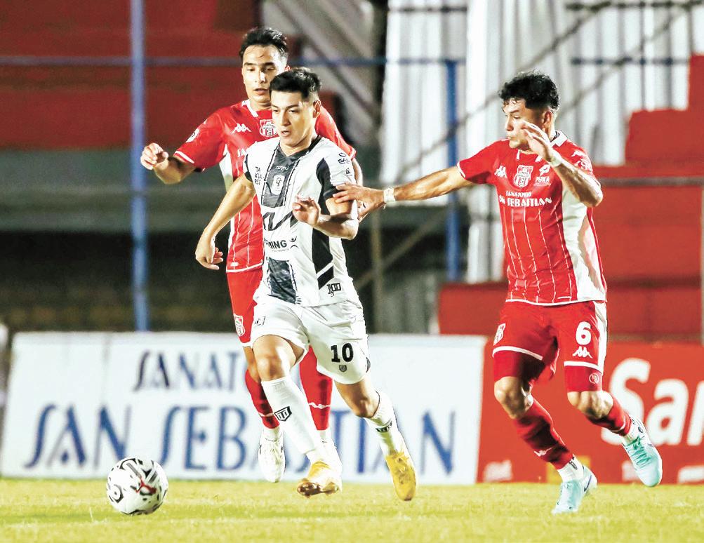 El albirrojo Alex Arce intenta dominar el balón ante la presión de los incaicos en el empate de anoche en Lima