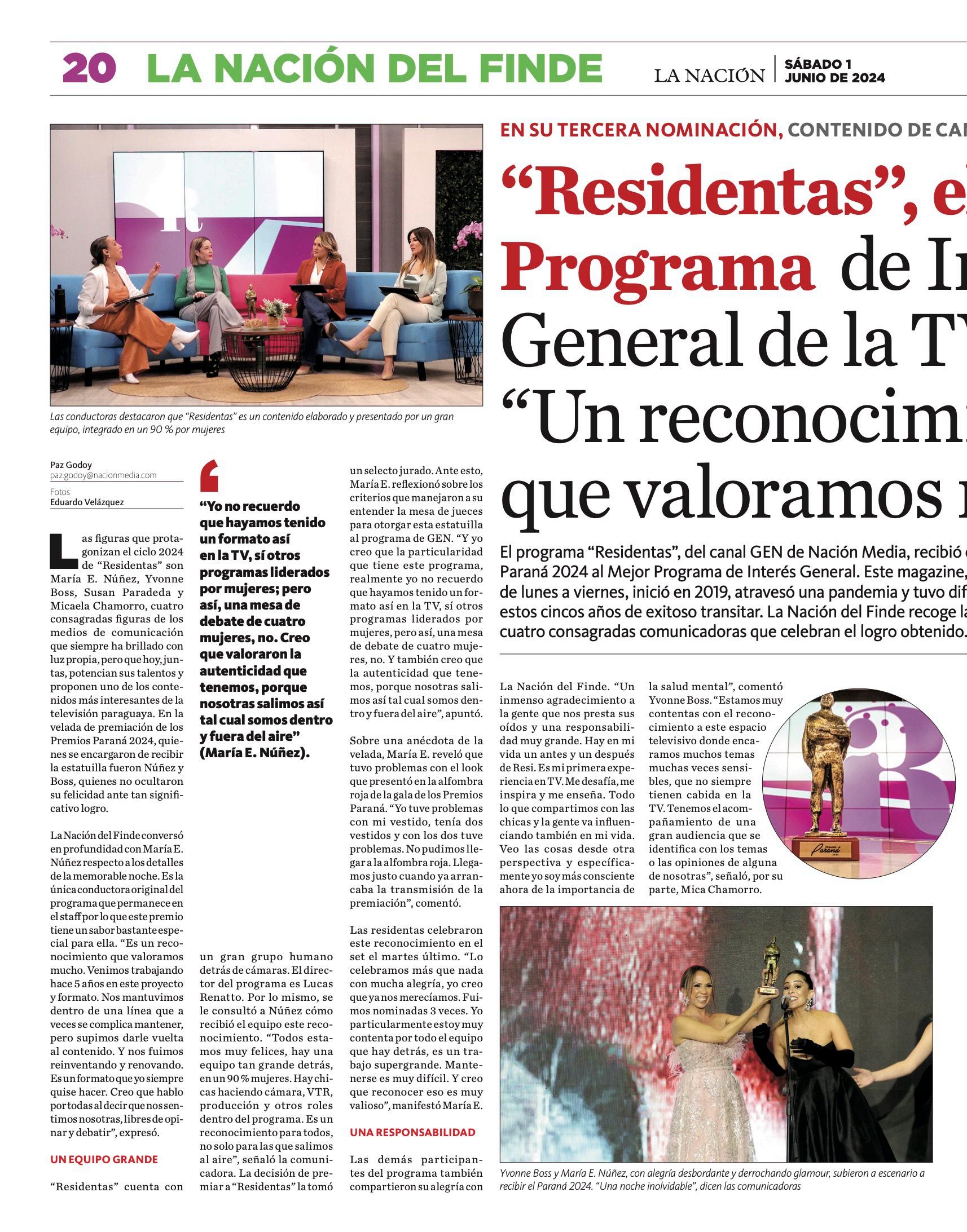 “Residentas” es destacado como Mejor Programa de Interés en TV