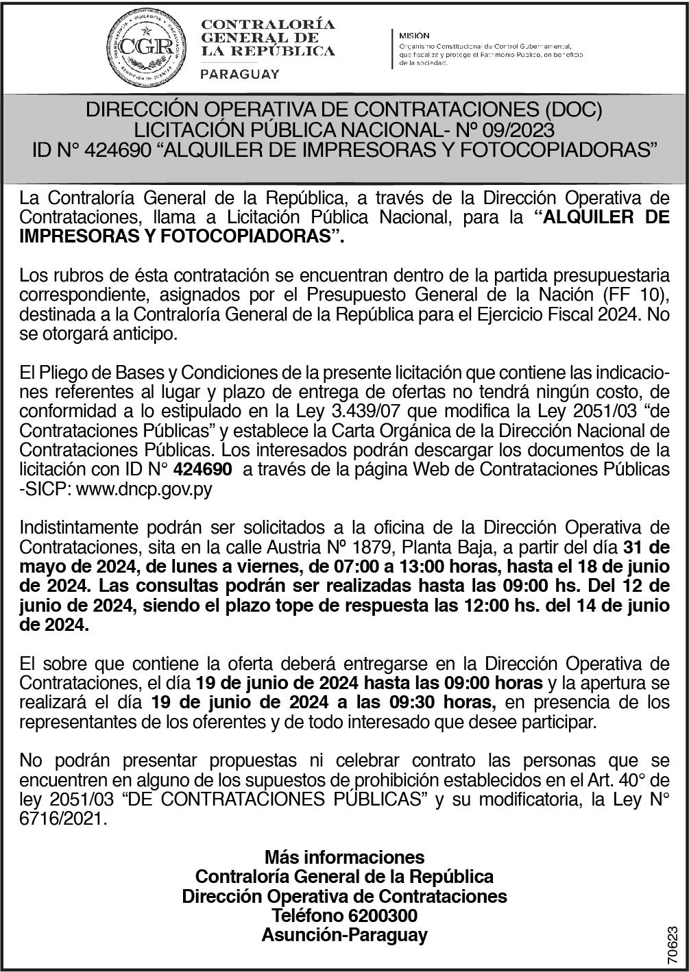 Los términos y condiciones para esta licitación fueron publicados en el portal de la Dirección de Contrataciones Públicas y en la página web de la Ande