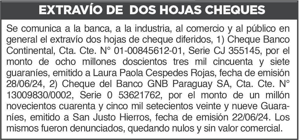 AGUILAR PEREIRA Y CENCIANA DELVALLE DE PEREIRA Juan León Mallorquín, 13 de junio de 2024. Abog. Roberto Trinidad Escobar (Actuario Judicial). -71408/23/06.-