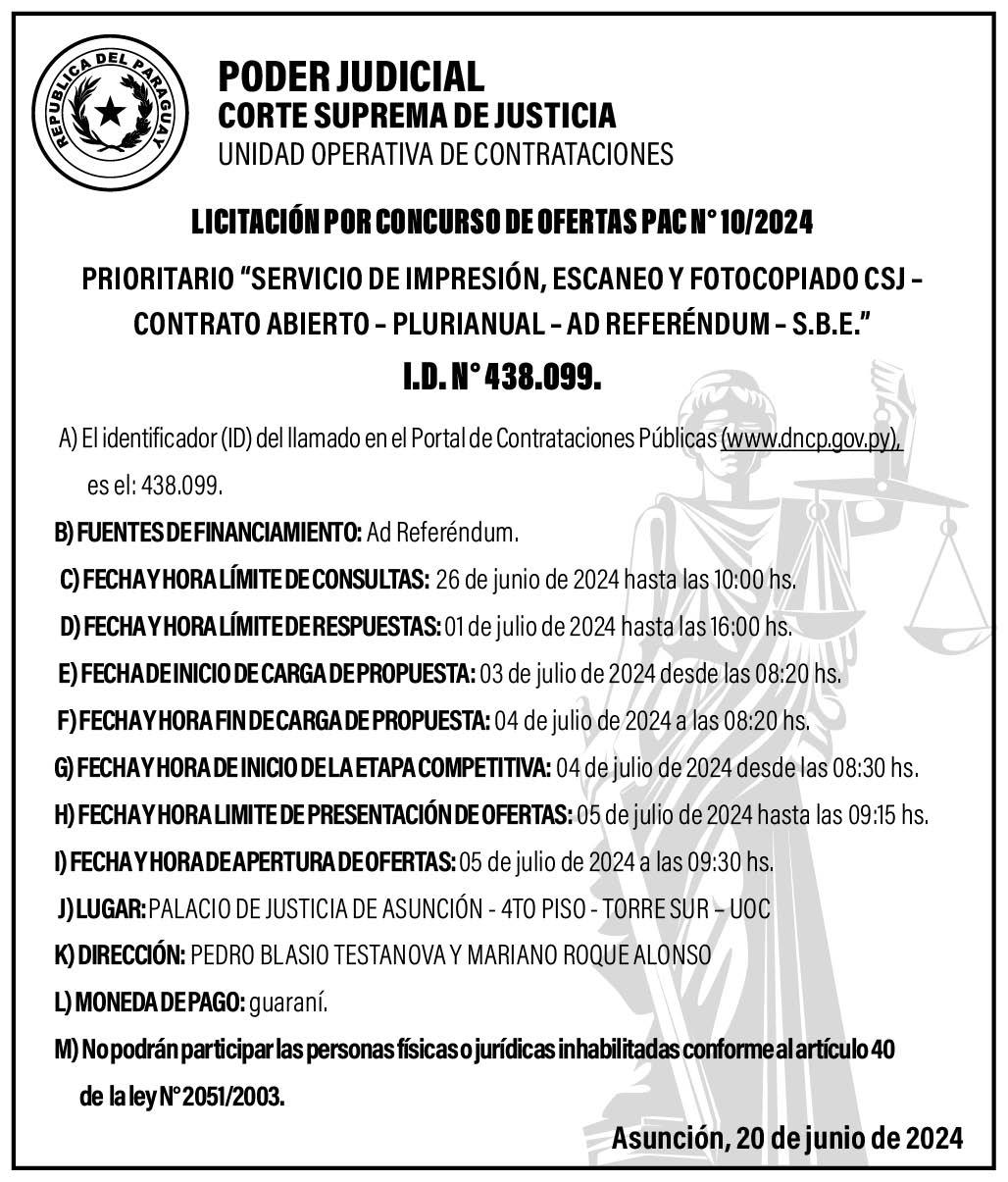 Para el próximo lunes está prevista una apertura de ofertas. Para ello, se espera que Desarrollo Social pueda contestar y permitir que Contrataciones Públicas se expida.