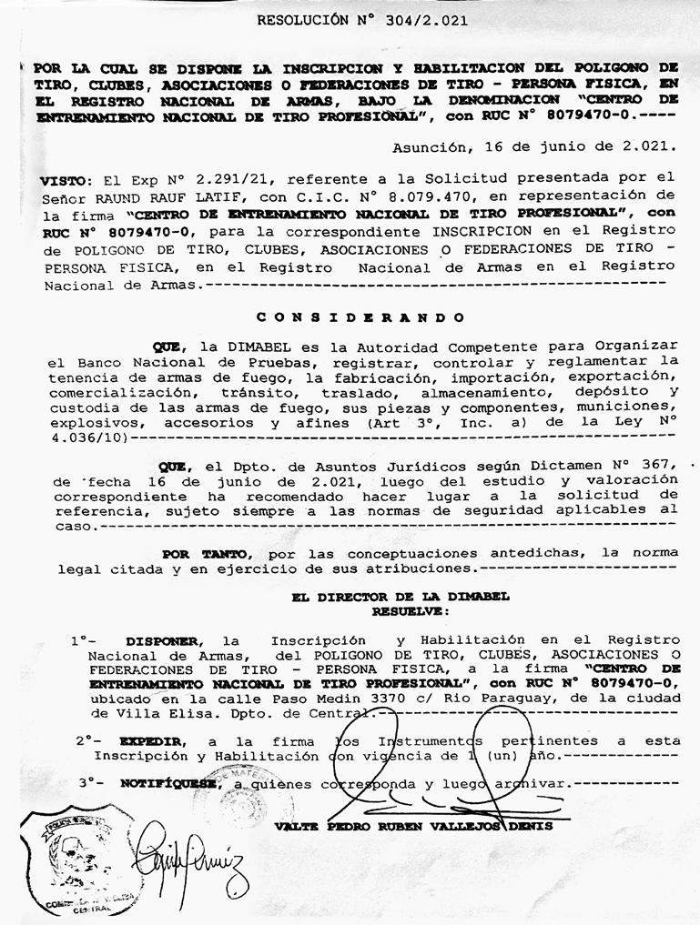 La visita que recibió de uniformados de la Dirección de Material Bélico (Dimabel) y en la que le confirmaron la decisión de cerrar su centro de entrenamiento de tiros tras llamada de la entonces diputada al comandante de las Fuerzas Militares del gobierno de Mario Abdo Benítez, conversación plasmada en audios y fotografías, para el ingeniero Rauand Rauf Latif es una de las pruebas contundentes de la serie de aprietes por la que atribuye tráfico de influencias a Kattya González.