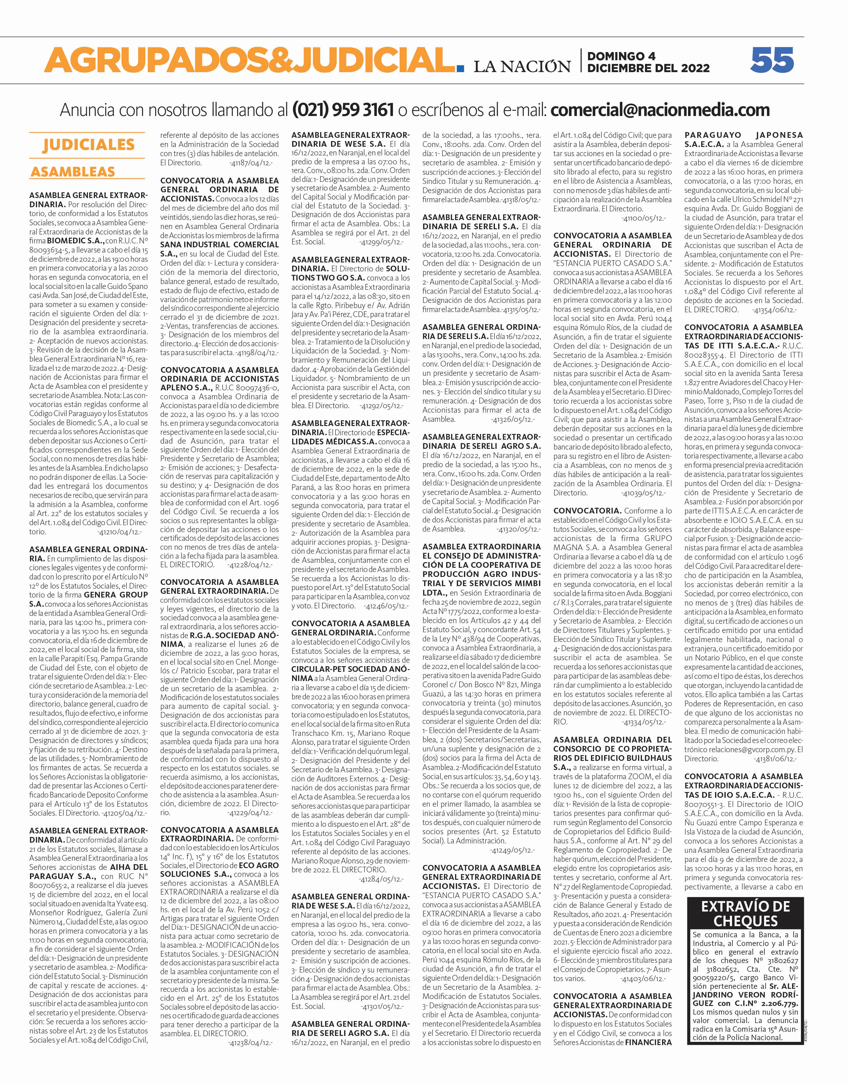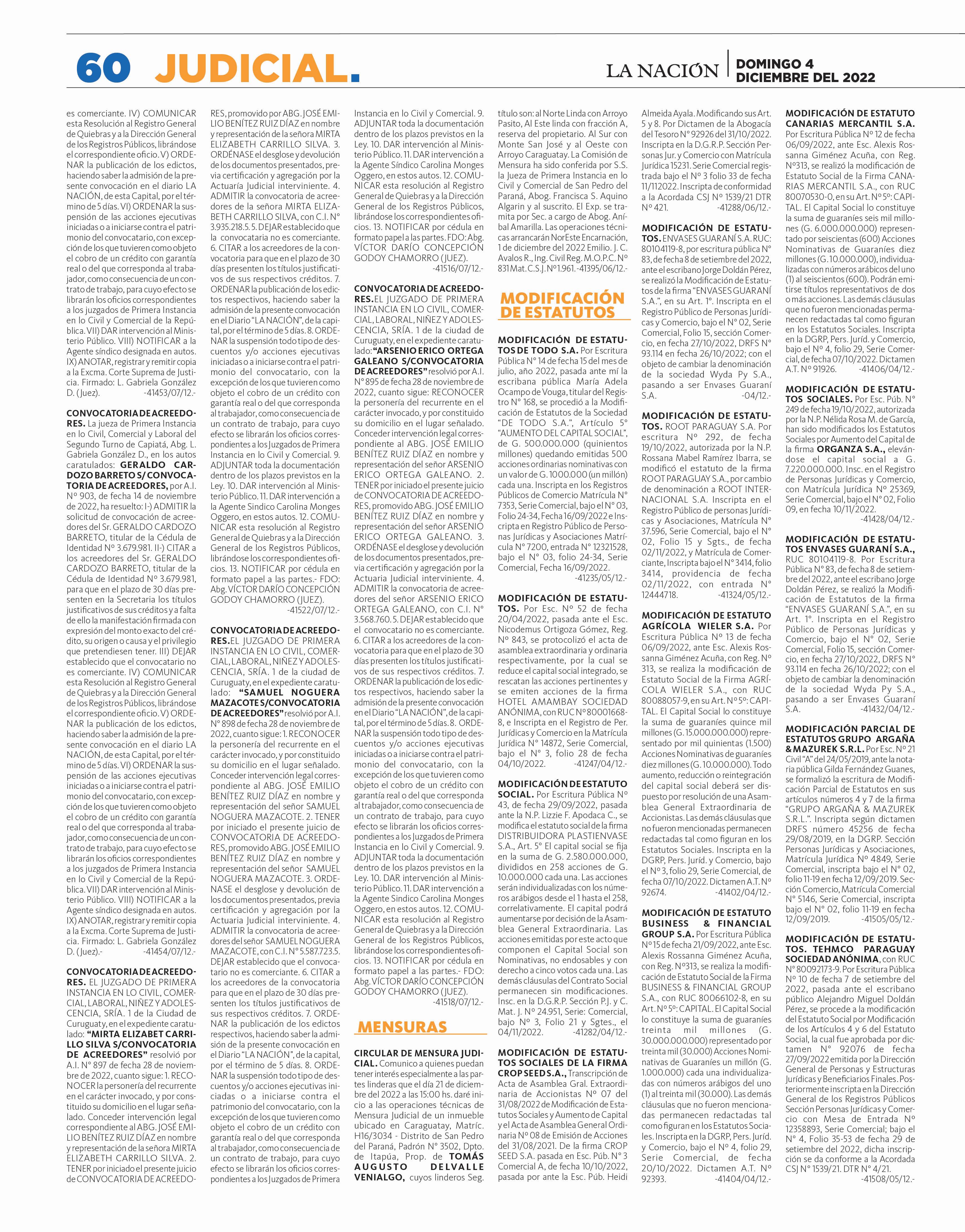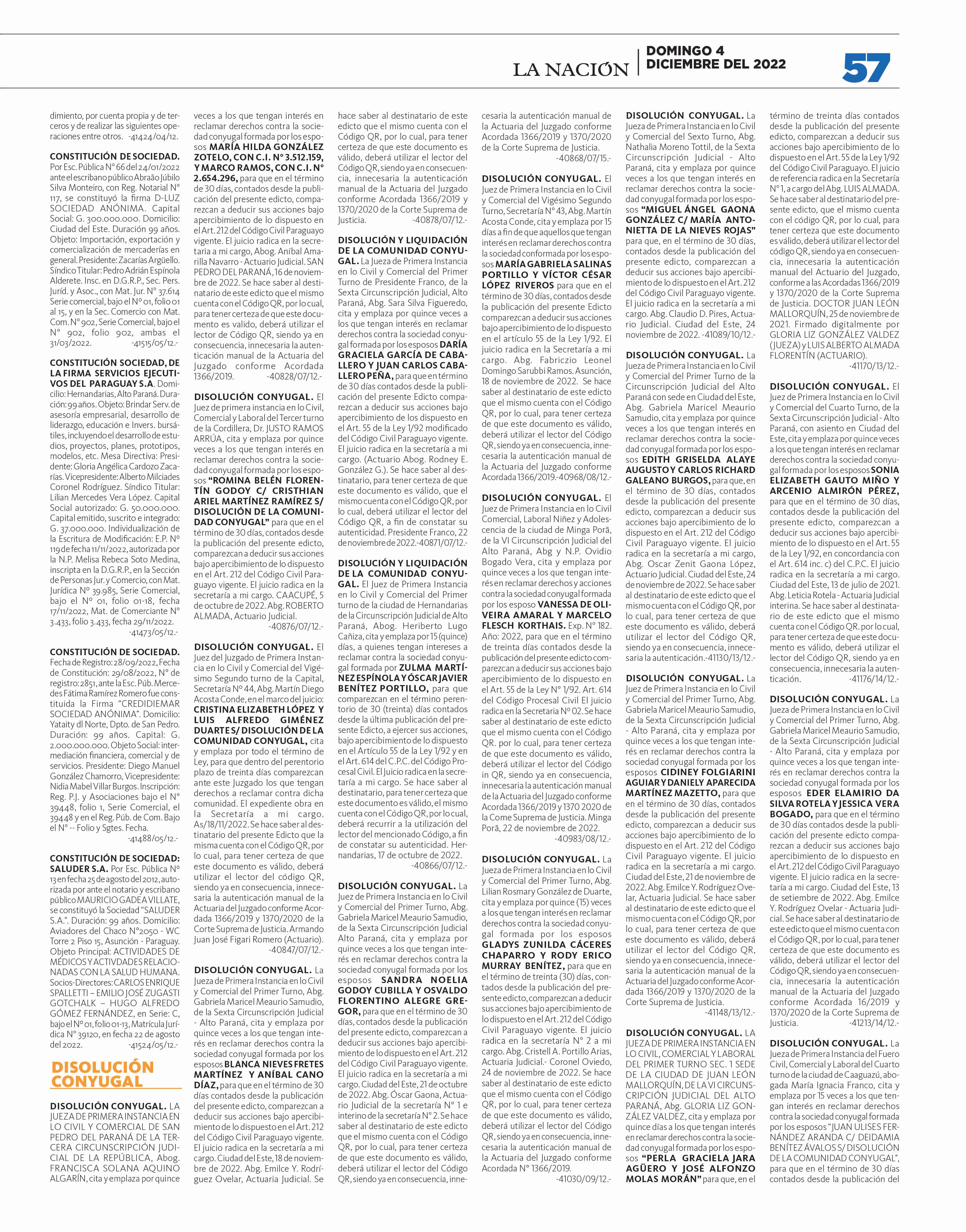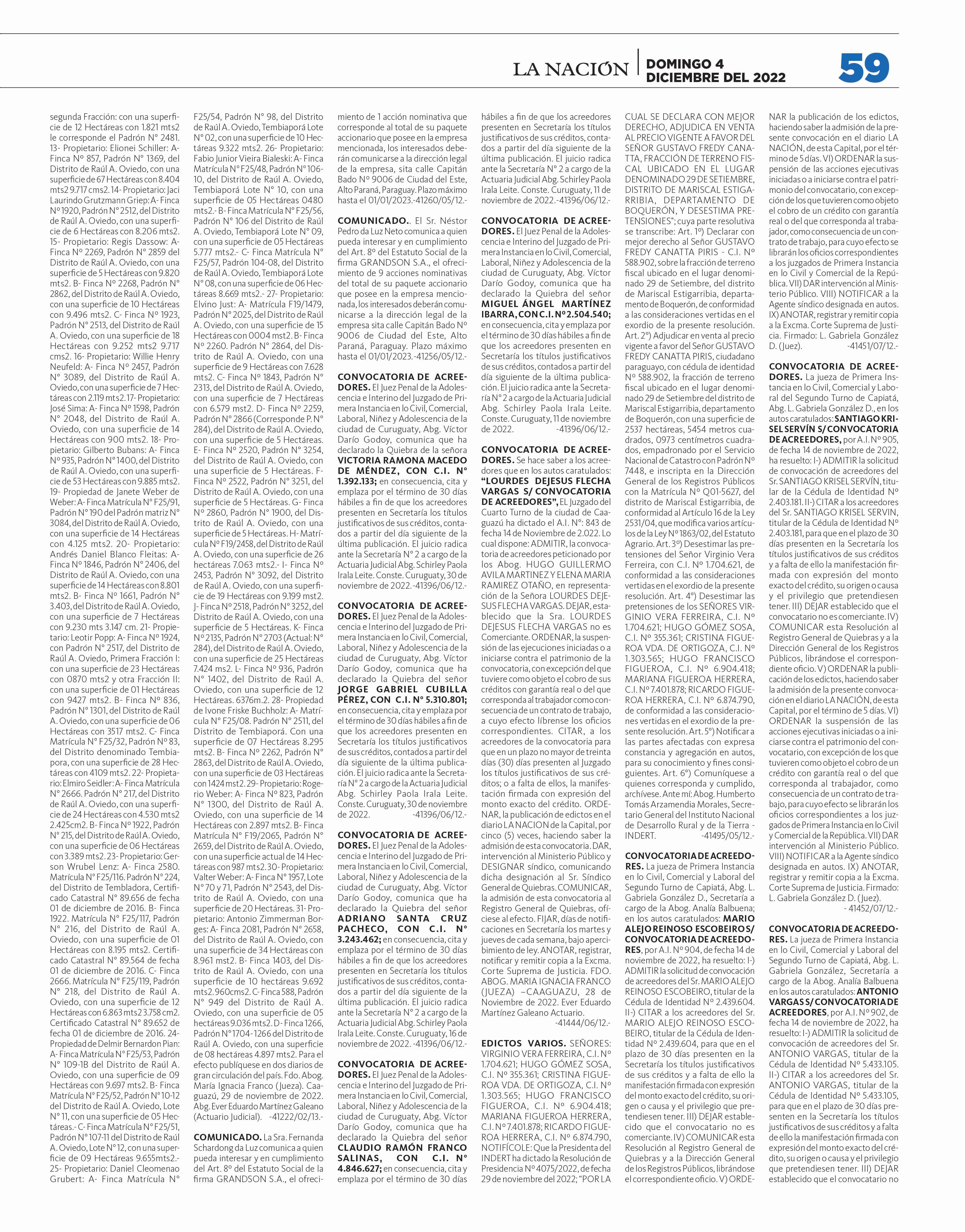 Bajos P. 68 CRÍTICA A ROLÓN DE LA SENAD: “Trata de ser cómplice y que no se destape la putrefacción” P. 7 Dr. Carlos Peris, especialista en seguridad y derechos humanos. DOMINGO 4 DE DICIEMBRE DEL 2022 PARAGUAY AÑO 28. Nº 10.003 G. 10.000 PROMOCIÓN DE VALOR Arambé: La educación como proyecto de amor “El orgullo de luchar por un país mejor”