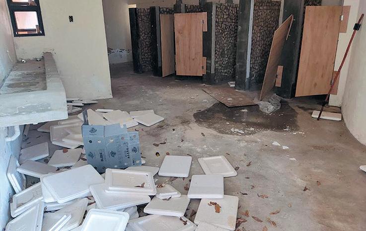 El icónico centro de eventos de San Bernardino parece un basural, lo que refleja el descuido del inmueble.
