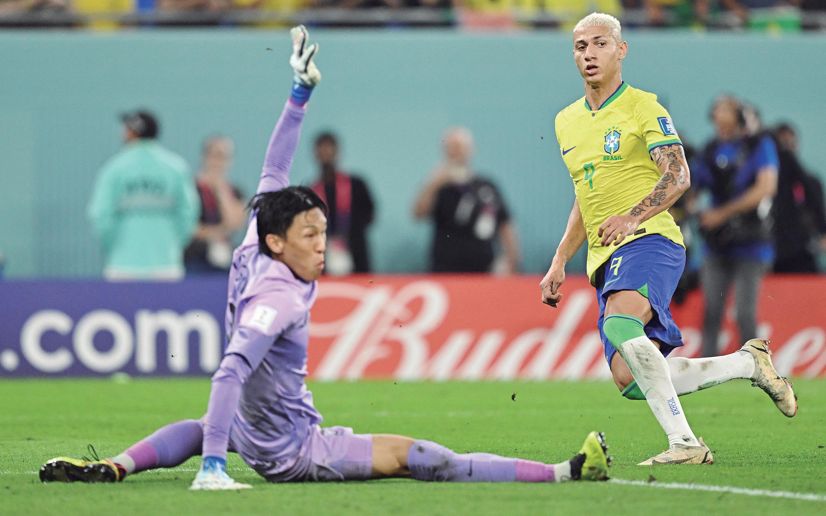 Estadio: 974. Árbitro: Clément Turpin (Francia). Goles: 7’ Vinicius, 13’ Neymar, de penal; 29’ Richarlison y 36’ Paquetá (B); 76’ Seung-Ho Paik (C). Amonestado: Jung Woo-Young (C) Los brasileños dispersaron las dudas surgidas tras su caída contra Camerún (1-0) en el cierre del Grupo G al sen tenciar el juego en el primer tiempo.