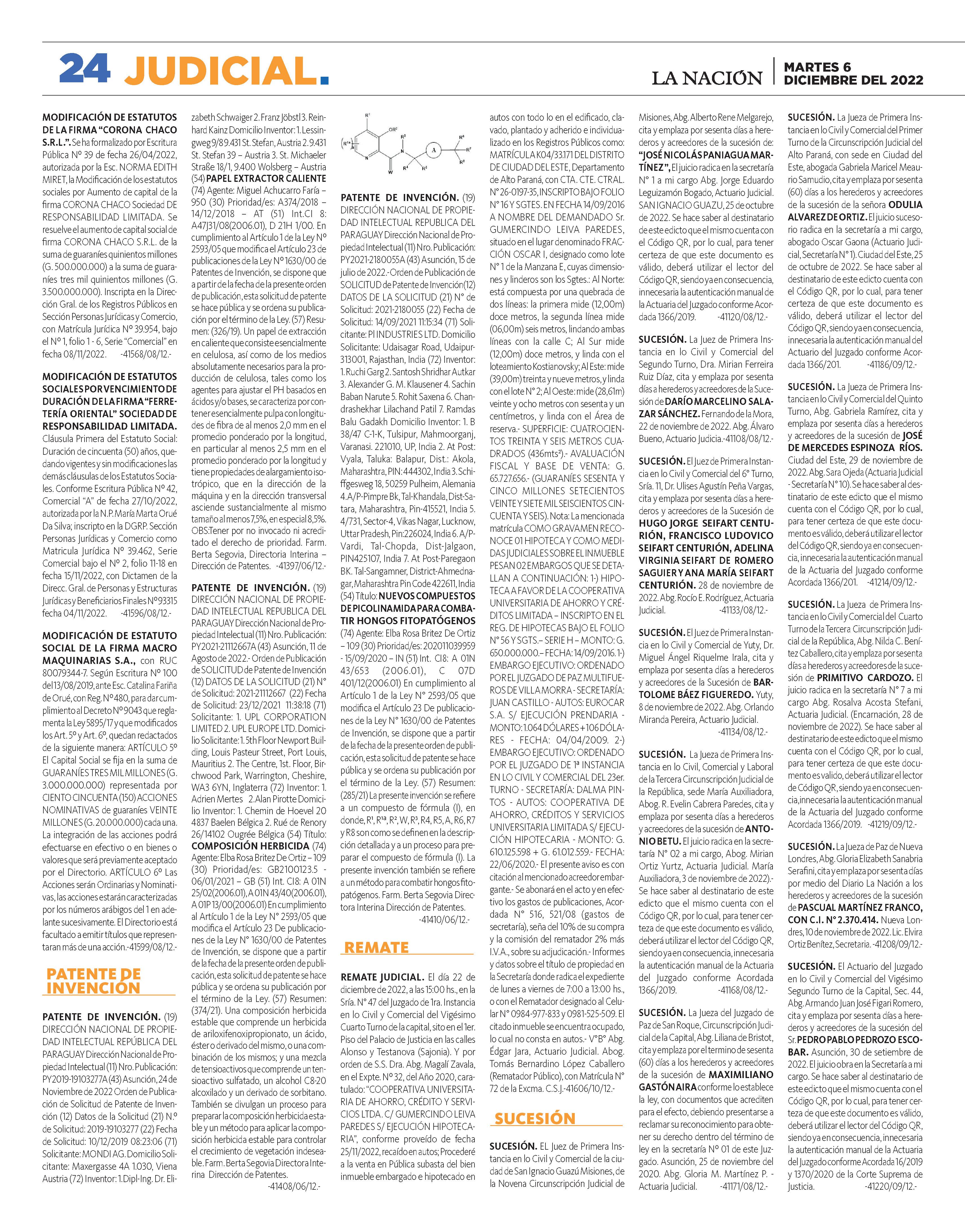 COVAX SERÁ REMITIDA AL EJECUTIVO PARA LA ELECCIÓN MARTES 6 DE DICIEMBRE DEL 2022 PARAGUAY AÑO 28 · Nº 10.005 G. 6.000 ASALTO AL IPS: