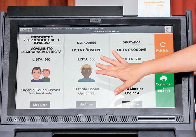 de mesa pueda abrir el bole tín y, en el caso de que lo haga, debe realizar la denuncia en la misma. “No es correcto que nadie, excepto el elector, mire y revise la opción, porque ahí se está violentando el secreto del voto, cualquier elector puede realizar su reclamo, su denuncia, si es que alguna persona, sea quien sea, le dice o le exige que muestre, o está violentando la garantía que tiene que tener de que su voto es secreto. El elector tiene el manejo de la situación siem pre, tiene el manejo y el dere cho, él debe doblar el boletín de voto, eso es muy impor tante”, aclaró.