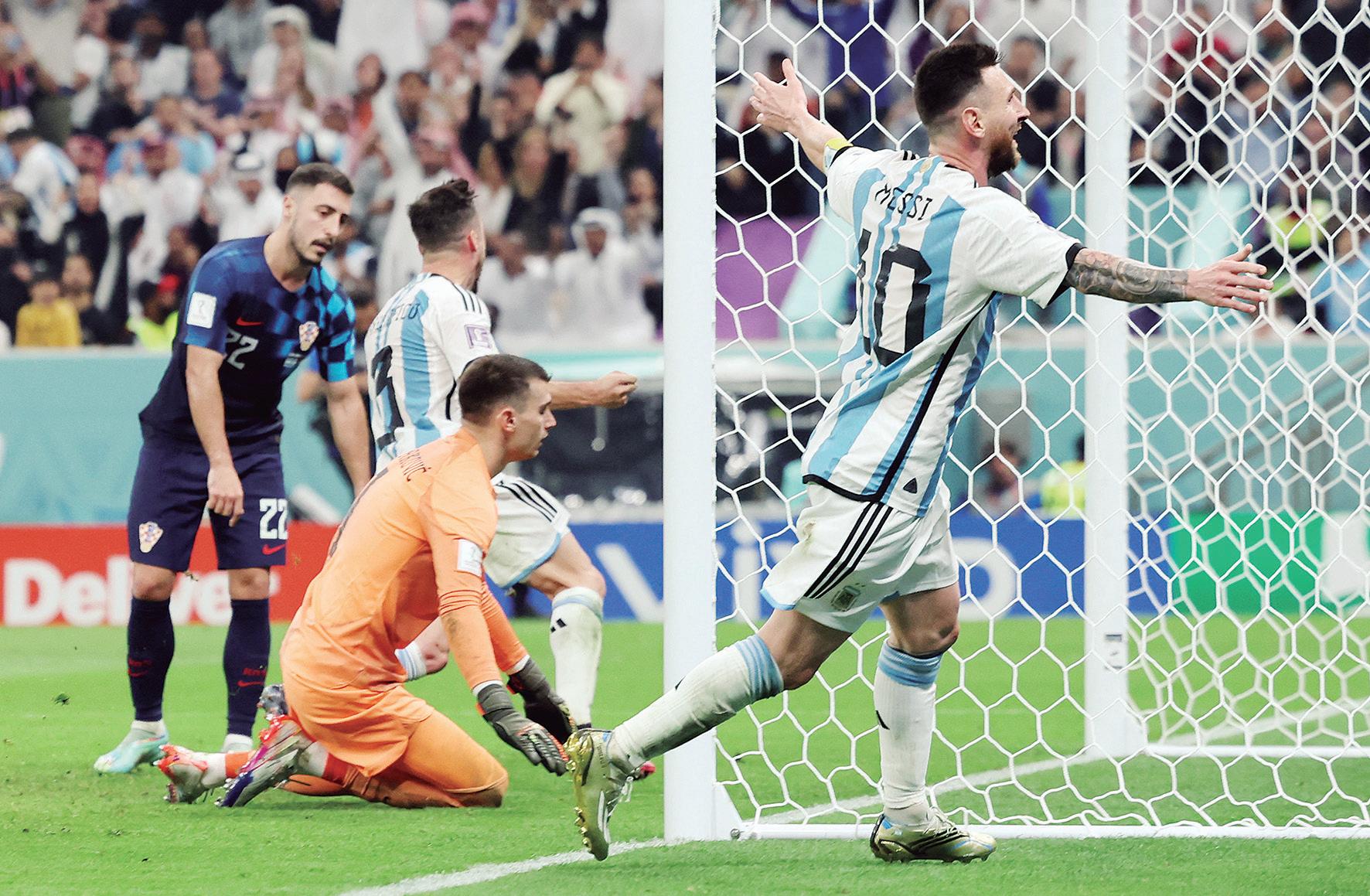 rgentina y Lionel Messi prolongaron su sueño de ser campeones del mundo hasta la final de Qatar 2022, tras derrotar con un contundente 3-0 a la Croacia de LukaEn la segunda mitad, Álvarez repitió (69), con una asistencia de Messi servida en bandeja de plata, para el 3-0 definitivo.