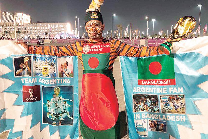 El aficionado que viajó desde Bangladesh hasta Qatar para alentar a la selección Argentina.