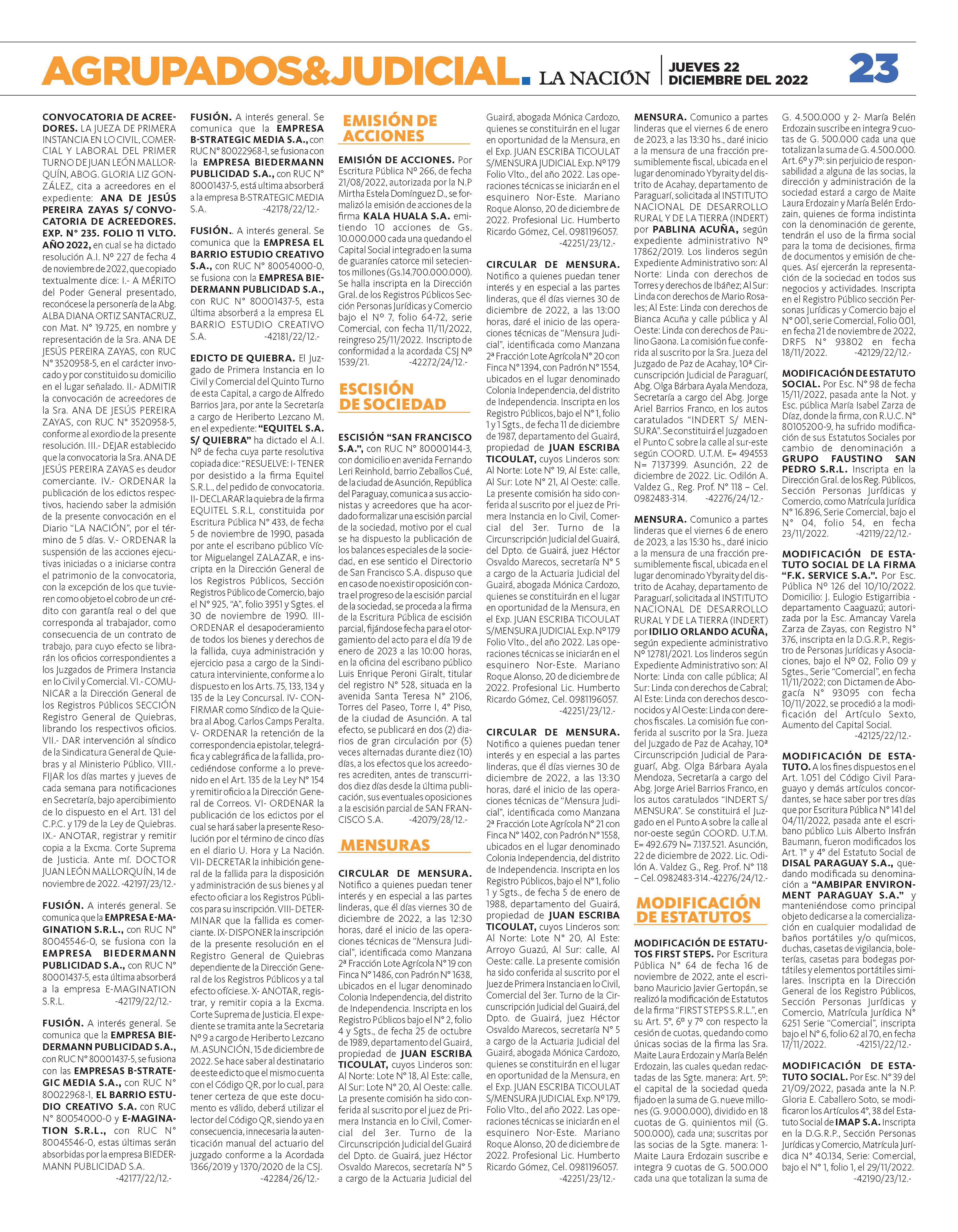 JUEVES 22 DE DICIEMBRE DEL 2022 PARAGUAY AÑO 28 · Nº 10.021 G. 6.000 COMUNICADO: El Frente Guasu “reafirma” su total respaldo a la dupla Euclides-Querey P. 7 EURO 7.300 7.700 COTIZACIONES COMPRA VENTA DÓLAR CHEQ. 7.290 7.360 PESO ARG. 20 28 DÓLAR EFEC. 7.150 7.300 REAL 1.365 1.430 ABANDONO: En 6 meses, el IPS no adjudicó compra de medicamentos oncológicos P. 5 NAKAYAMA RECLAMA INCONSISTENCIAS Y SILVA DICE: “YO LES AVISÉ”