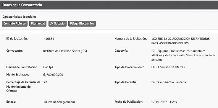 Ofertas para el llamado para adquisición de anteojos del IPS se abrieron hace casi dos meses y aún no se adjudican.