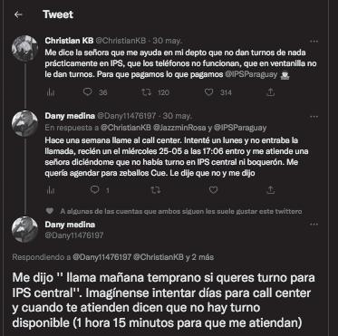 Ser atendidos por el servicio de call center es un suplicio por el que pasan todos los asegurados del Instituto de Previsión Social (IPS) que necesitan agendar un servicio, ya sea una cita médica, algún estudio de imágenes o de laboratorio. Según numerosas denuncias realizadas a través de los medios de comunicación y/o redes sociales, este proceso, dependiendo de la suerte de quien llame, puede llegar a demorar incluso más de una hora.