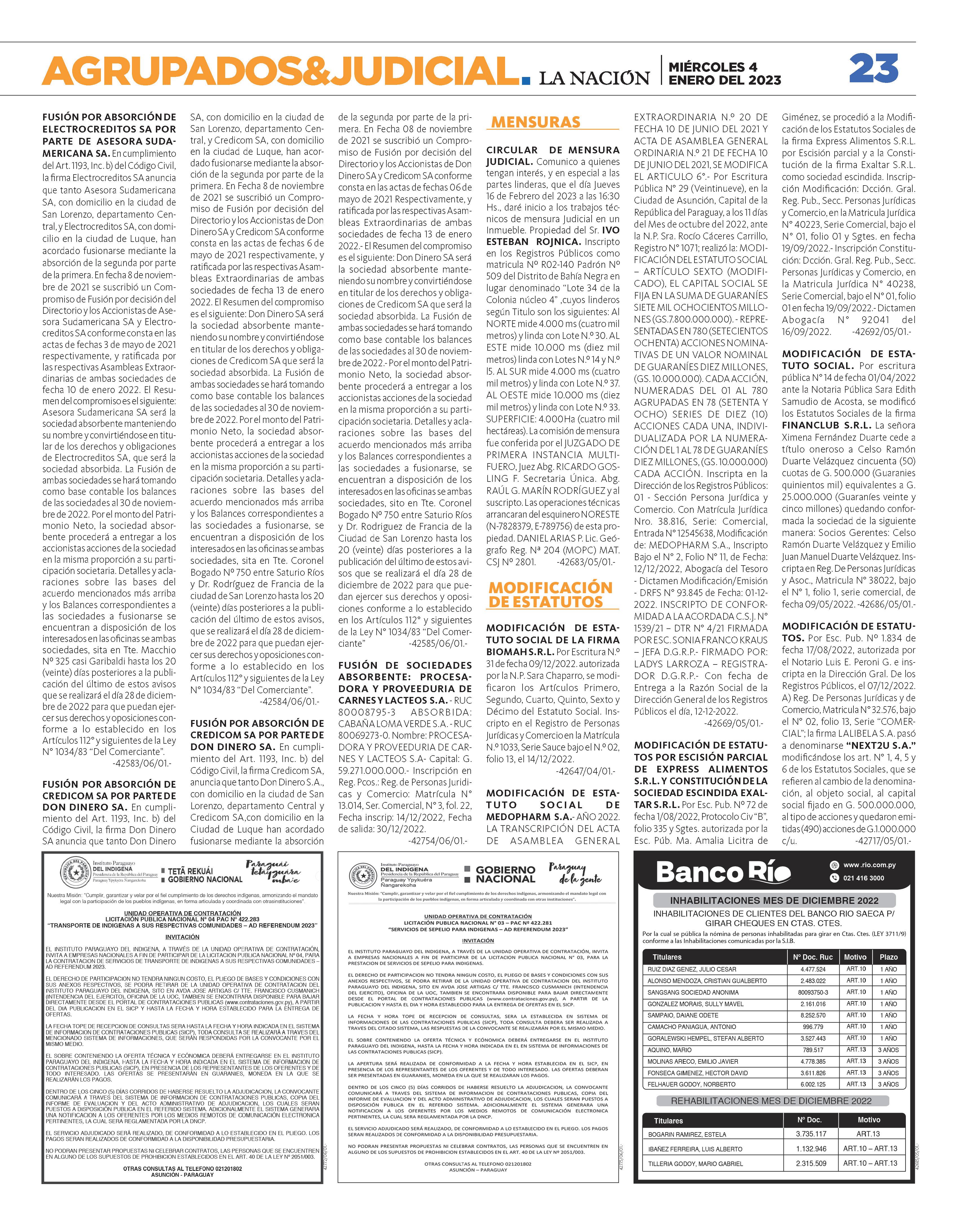 nes ordinarias, 23 dictámenes emitidos, más de 50 pedidos de informes a diversas dependencias del Estado y un importante número de verificaciones in situ realizadas en todo el país. Cabe destacar que muchos de los documentos tuvieron como destino la Dirección de Regis-