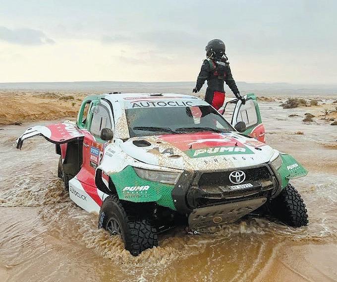 “Anduvimos superbién los primeros 200 kilómetros, después tuvimos problemas en la computadora del vehículo que se mojó. Llovió todo el camino en el desierto.
