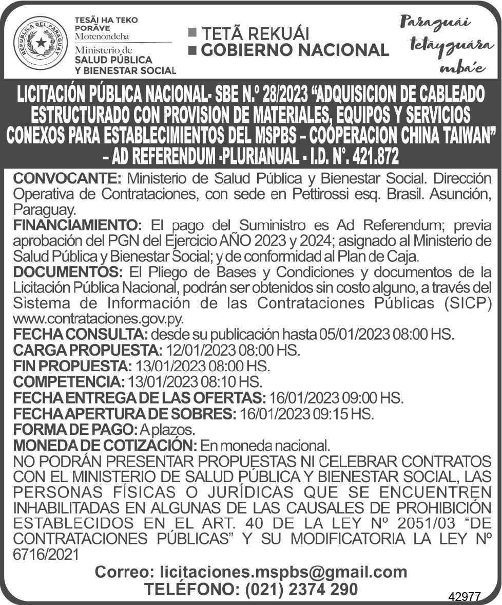 Santiago Rodríguez santiago.rodriguez@nacionmedia.comLa Dirección Nacional de Contrataciones Públicas (DNCP) ordenó la modificación del pliego de bases y condiciones (PBC) del llamado a licitación para la fumigación de las distintas sedes del Instituto de Previsión Social (IPS) para el que se prevé desembolsar G. 7.877 millones.
