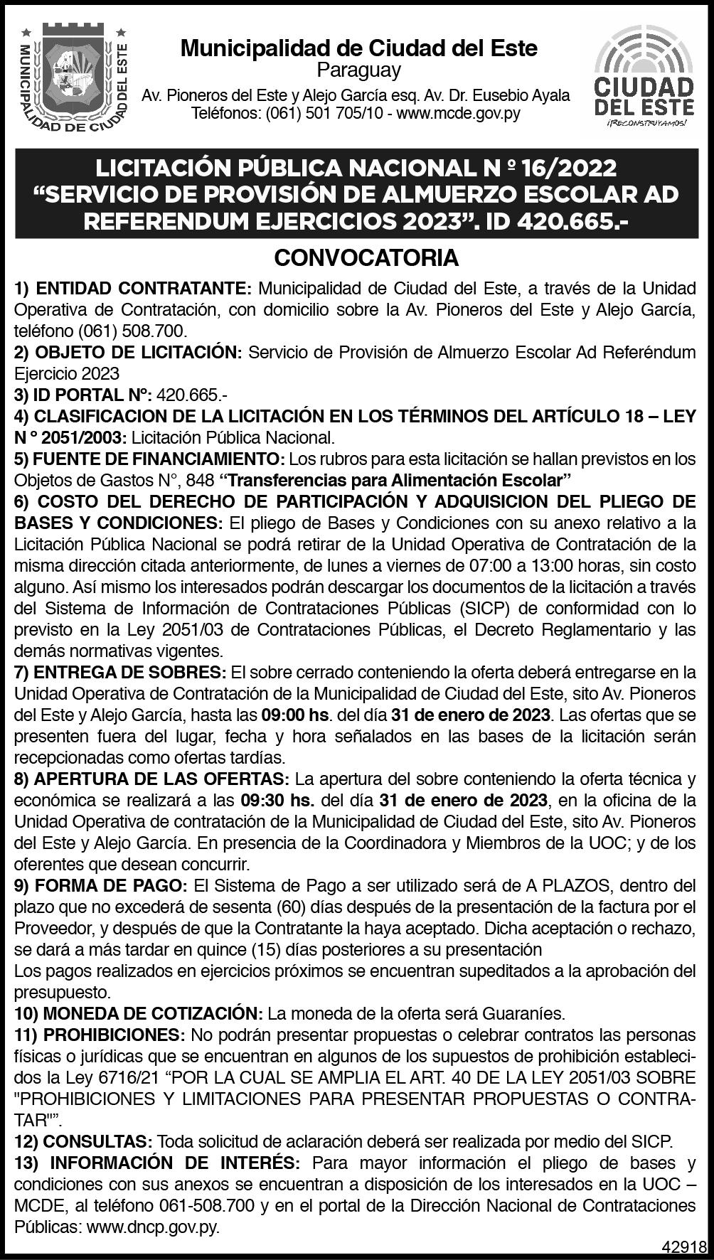 Asimismo, según el reclamo, este punto resulta técnicamente injustificado ya que las dependencias a ser cubiertas por el servicio en el interior del país no requieren de una cobertura constante como sí las sedes del Hospital Central, el Parque de la Salud y el Parque Urbano.