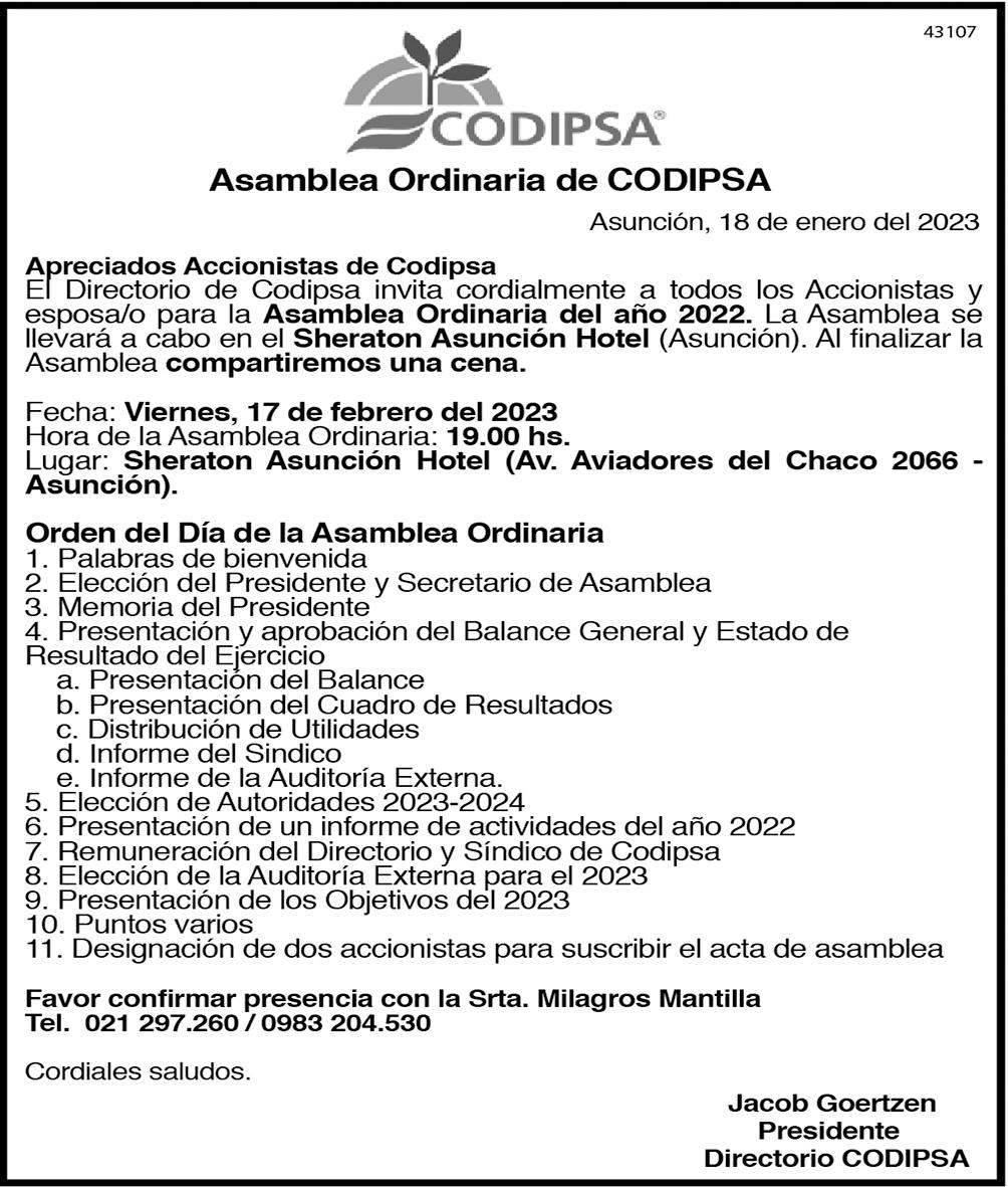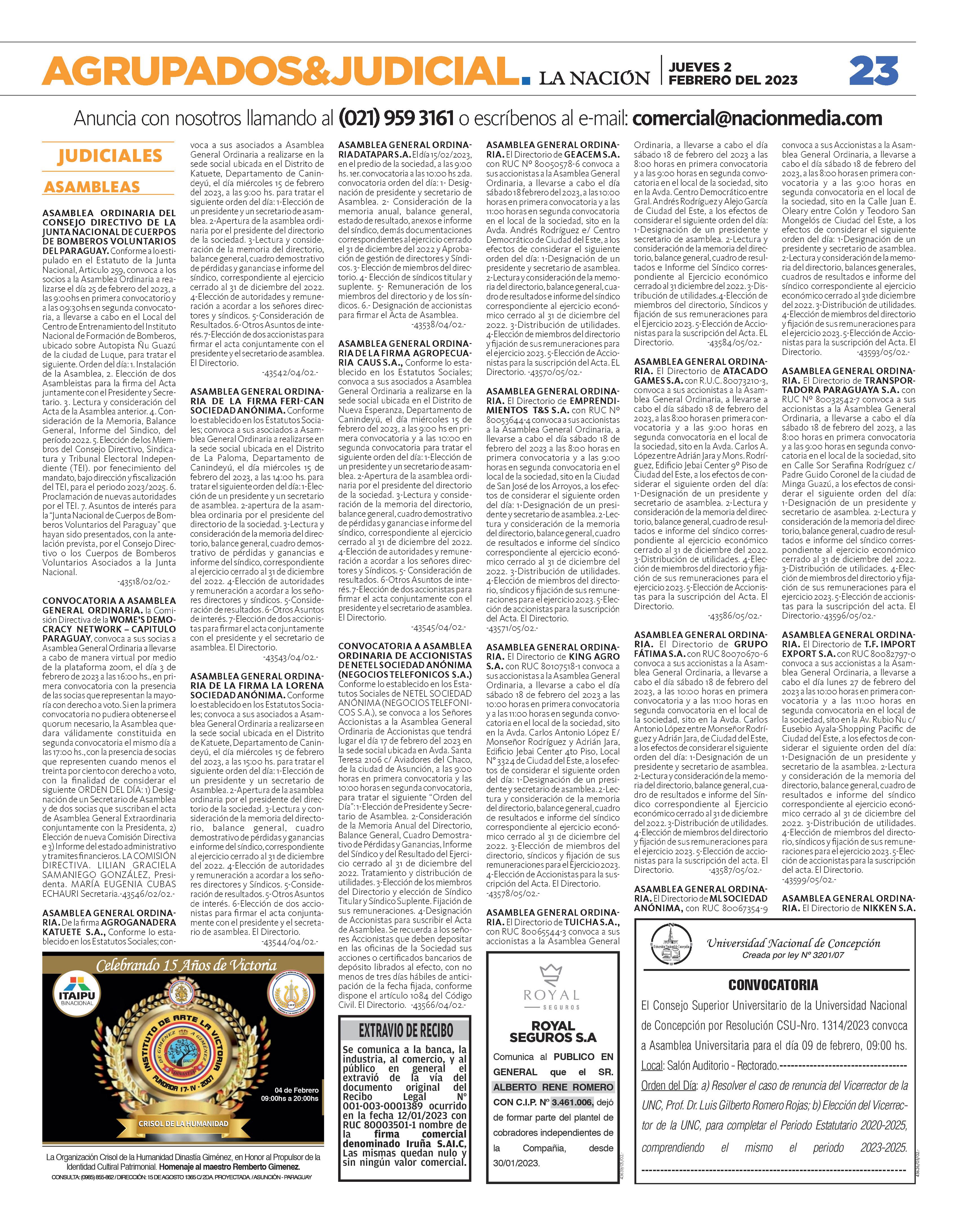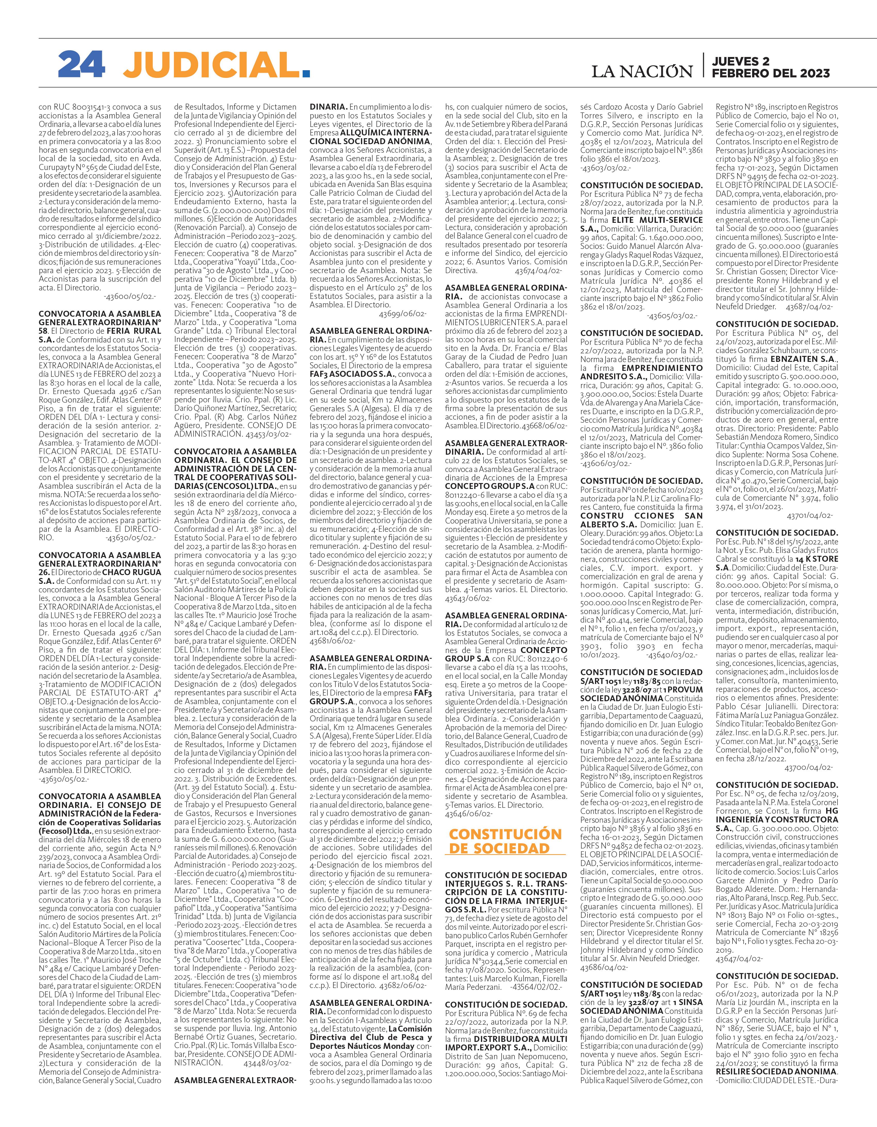 JUEVES 2 DE FEBRERO DEL 2023 PARAGUAY AÑO 28 · Nº 10.062 G. 6.000