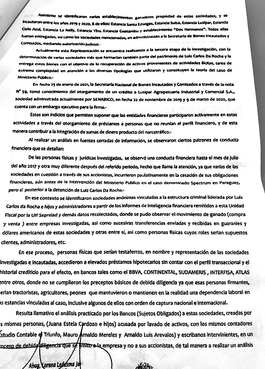 Este cliente de Atlas es el presunto prestanombre del poderoso narco Luiz Carlos da Rocha, alias Cabeza Branca, según reveló la Fiscalía. A la vez, la estancia ofrecida para ese crédito, está a cargo de Senabico tras la intervención fiscal. Se sospecha que el