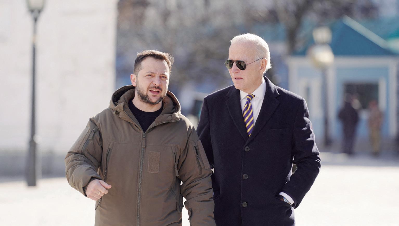 El presidente de Estados Unidos, Joe Biden, hizo ayer una sorpresiva visita a su par ucraniano Volodímir Zelenski, en Kiev. En ese encuentro le reiteró su “inquebrantable” apoyo a Ucrania y prometió nuevas entregas de equipamiento bélico. P. 21