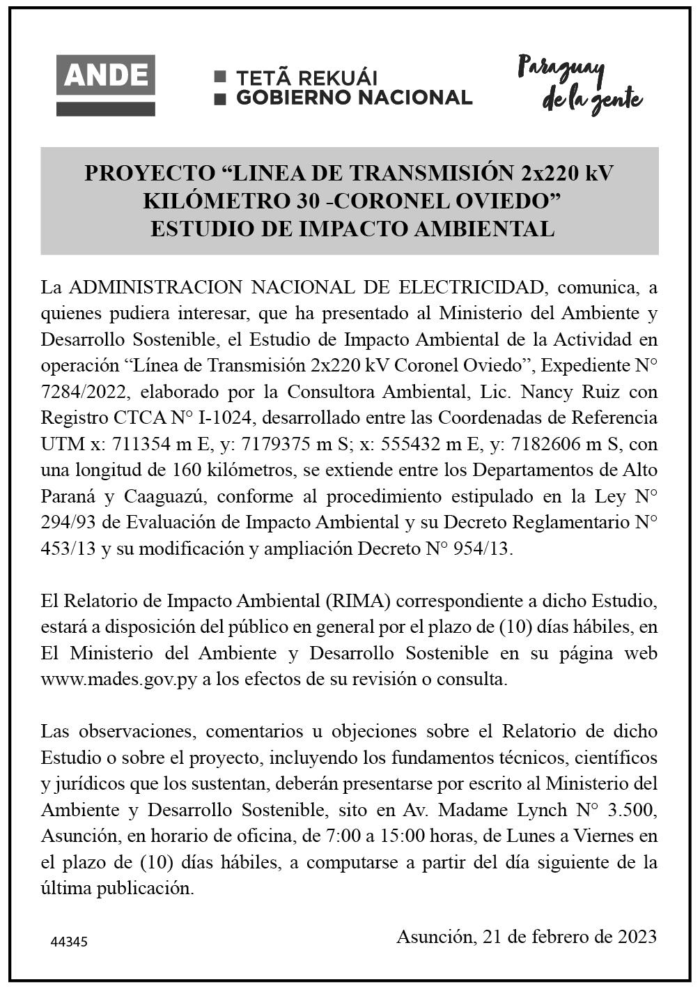 G. 1.500 millones con la Administración Nacional de Electricidad (Ande).