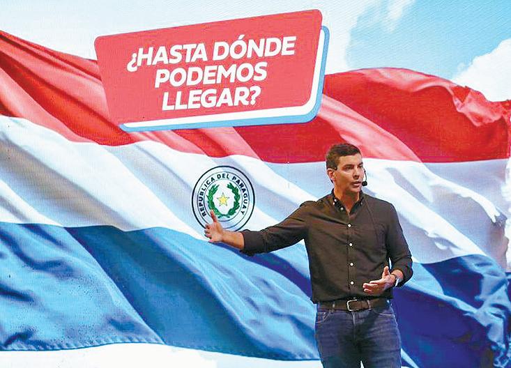 Una medición realizada por la encuestadora Oima Data señala que el 54% de la población encuestada considera que Santiago Peña es el candidato a la Presidencia con más chances de ganar en las próximas elecciones del 30 de abril. Esta medición analizó la respuesta de una muestra de 1.500 personas. P. 2