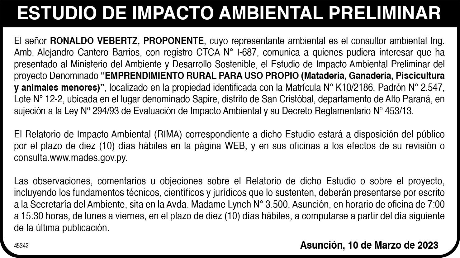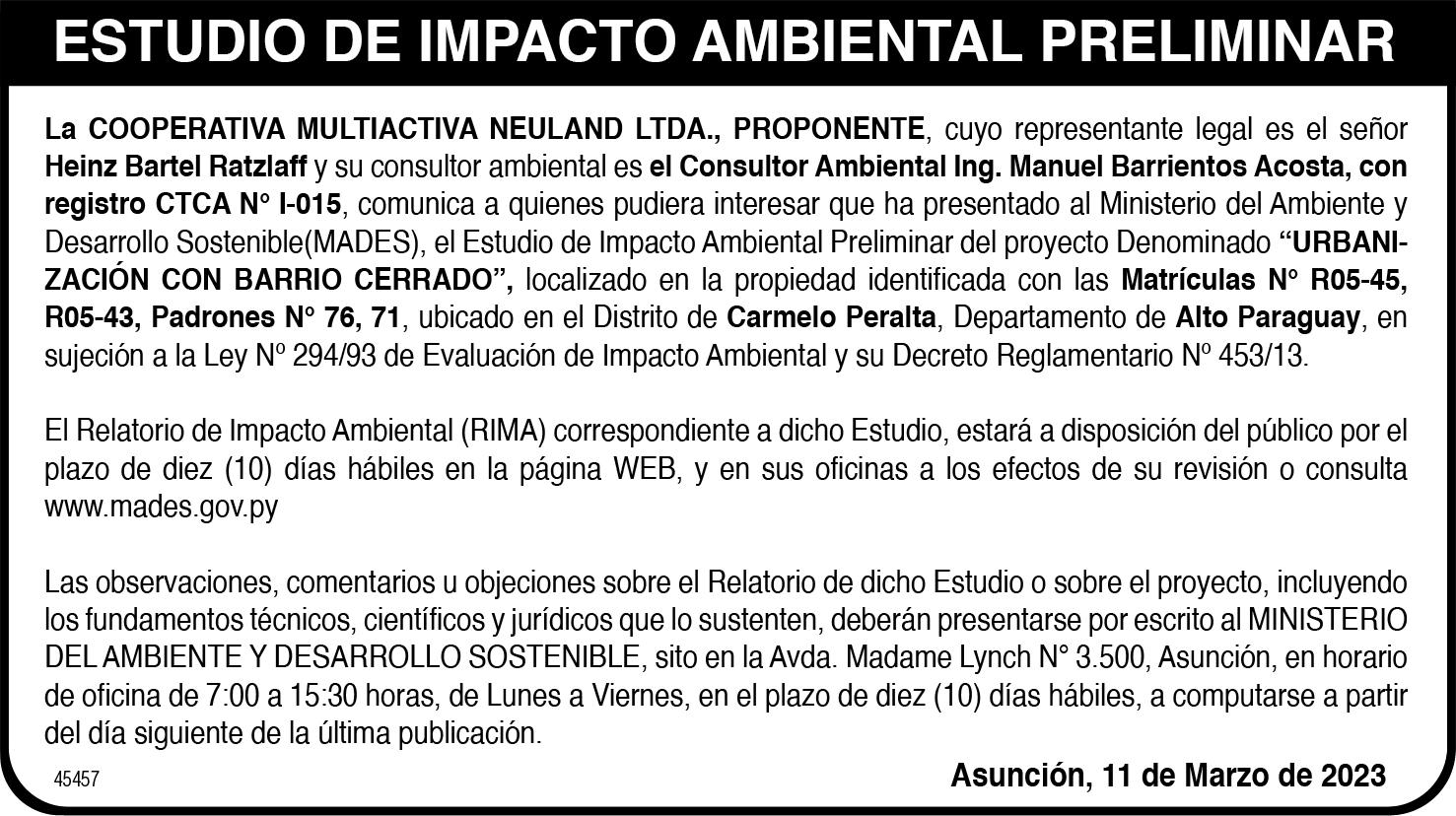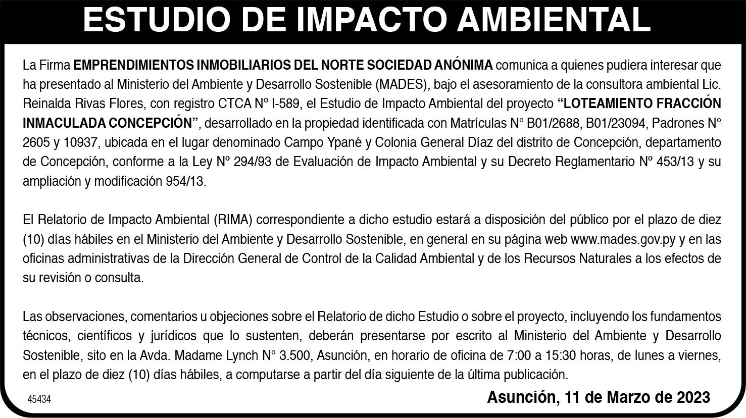 NARIA DE ACCIONISTAS a llevarse a cabo el día viernes 31 de Marzo de 2023, a las 16:00 horas en PRIMERA CONVOCATORIA y a las 17:00 horas en SEGUNDA CONVOCATORIA, en la casa ubicada en Legión Civil Extranjera N° 1049 Esq. Las Perlas de esta capital, para tratar el siguiente ORDEN