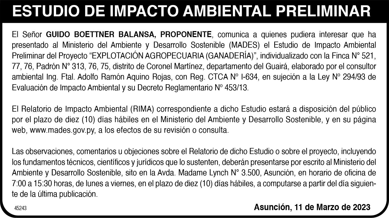 ASAMBLEA GENERAL ORDINARIA FUSQUIM S.A. De conformidad a lo establecido en los Artículos 1079 y 1080 del Código Civil y 19 y 20 de los Estatutos Sociales, convócase a los Señores Accionistas de FUSQUIM S.A. a la Asamblea General Ordinaria en primera convocatoria a realizarse el día 29 de marzo de 2023 a las 08:00 horas en su local social ubicado en Valois Rivarola y Senador M. Flecha, para tratar el siguiente