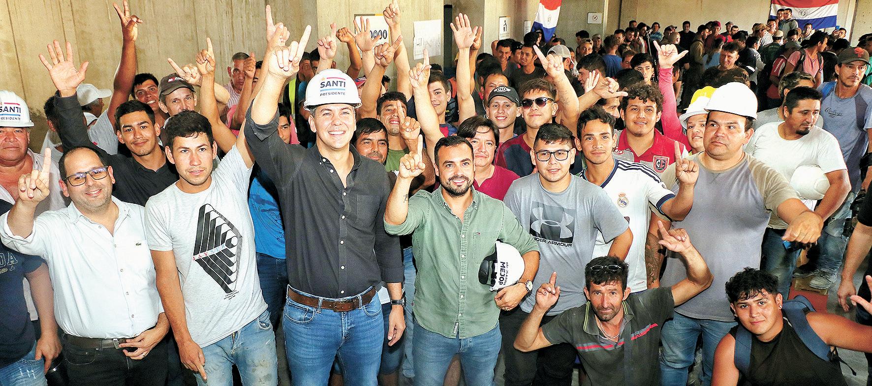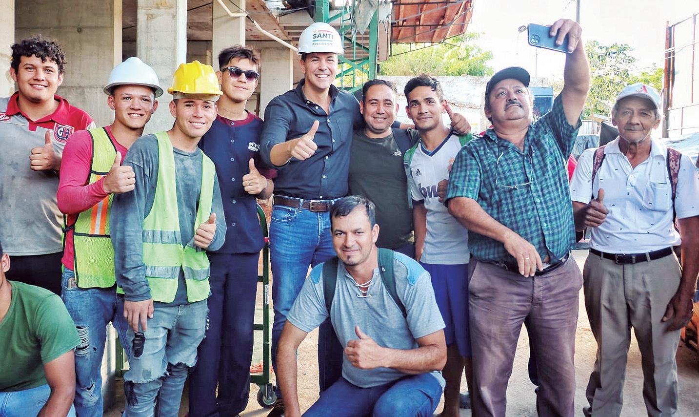 El candidato presidencial del Partido Colorado, Santiago Peña, visitó ayer jueves a trabajadores de la construcción, oportunidad en que compartió con ellos sus proyectos de gobierno de cara a las elecciones generales del 30 de abril.