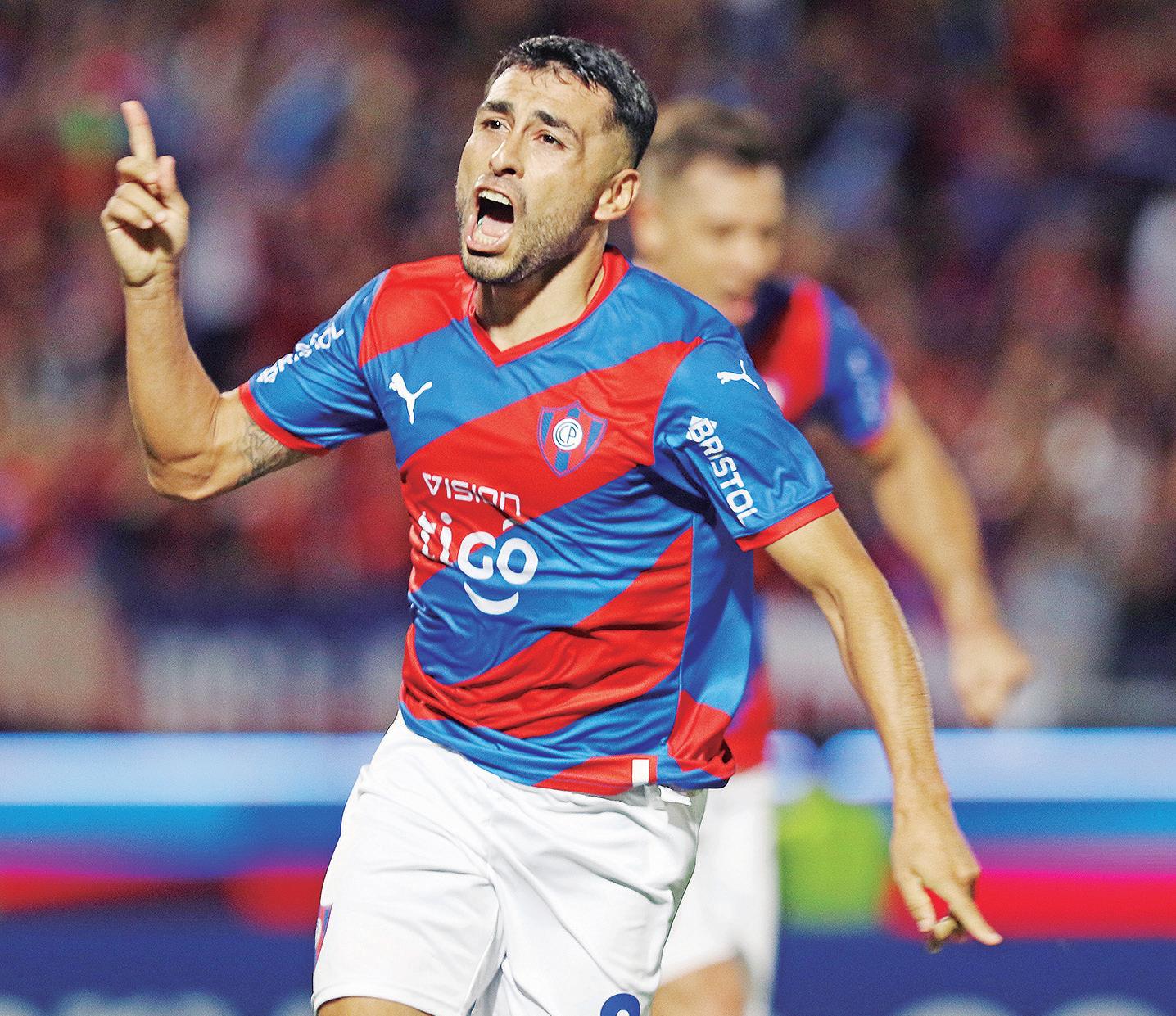 Claudio Aquino anotó un golazo y grita su alegría a todo el estadio. Ángel Cardozo Lucena se asocia al festejo de Cerro Porteño en la Nueva Olla. NÉSTOR SOTO Luis Irala Nación Media