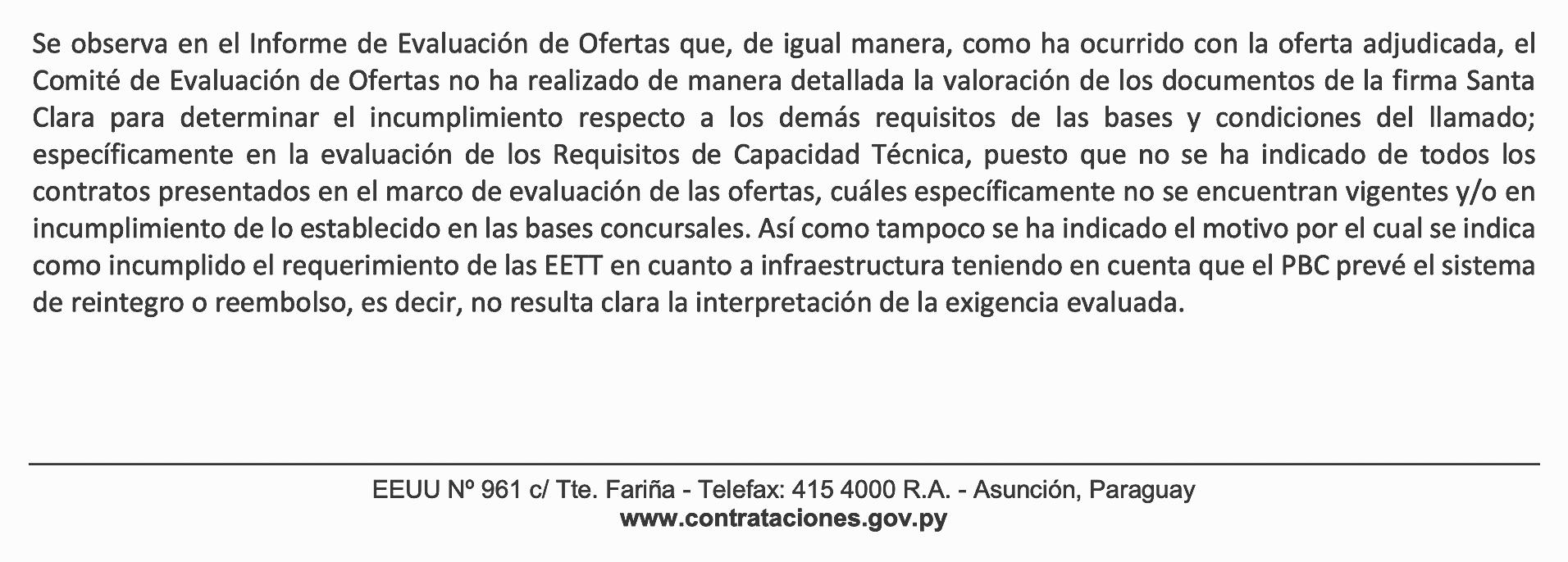 En su protesta, la firma Santa Clara cuestiona una serie de supuestas irregularidades que presumiblemente llevaron a su descalificación. Entre las presuntas infracciones, figuran denuncias como por ejemplo que el oferente privilegiado presentó