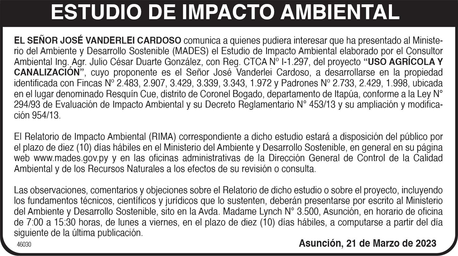20:30 Gral. Pablo Rojas