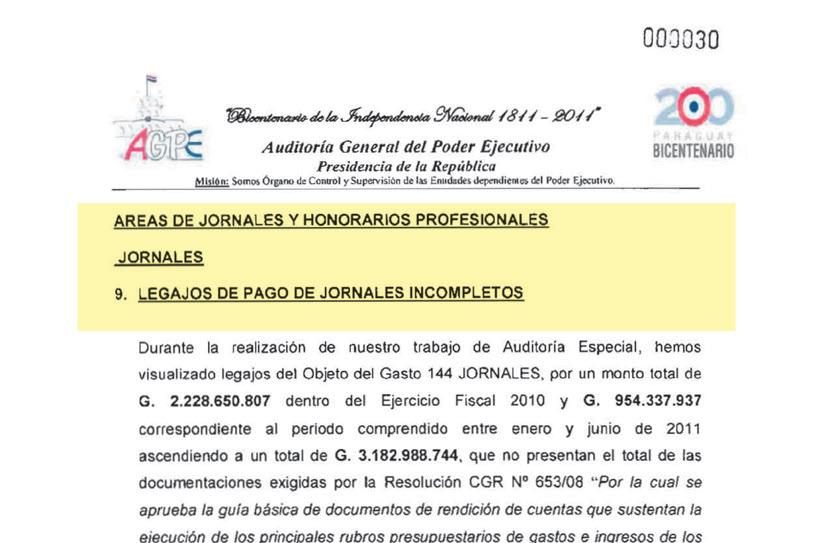 Recién ahora sale a luz el resultado de la Auditoría de Revisión Especial del Ejercicio Fiscal 2010 y el periodo comprendido entre el 1 de enero y el 30 de junio del 2011, que abarcó la administración de Efraín Alegre, quien estuvo en la institución desde el 15 de agosto del 2008 al 5 de junio del 2011, cuando fue rajado por el entonces presidente Fernando Lugo.