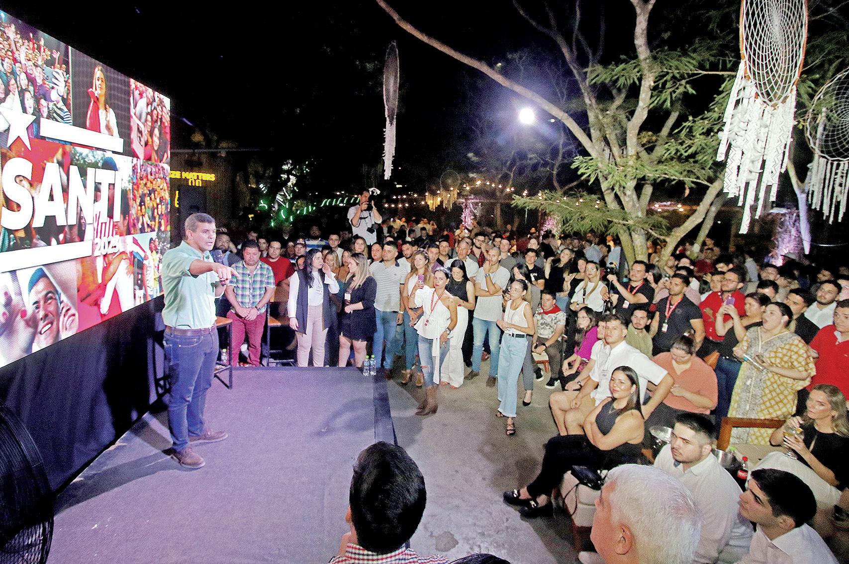 Santiago Peña se reunió anoche con jóvenes y universitarios para compartir visiones sobre el futuro del país. El presidenciable les lanzó el desafío de asumir el liderazgo de la nación tras las elecciones generales de abril. P. 5