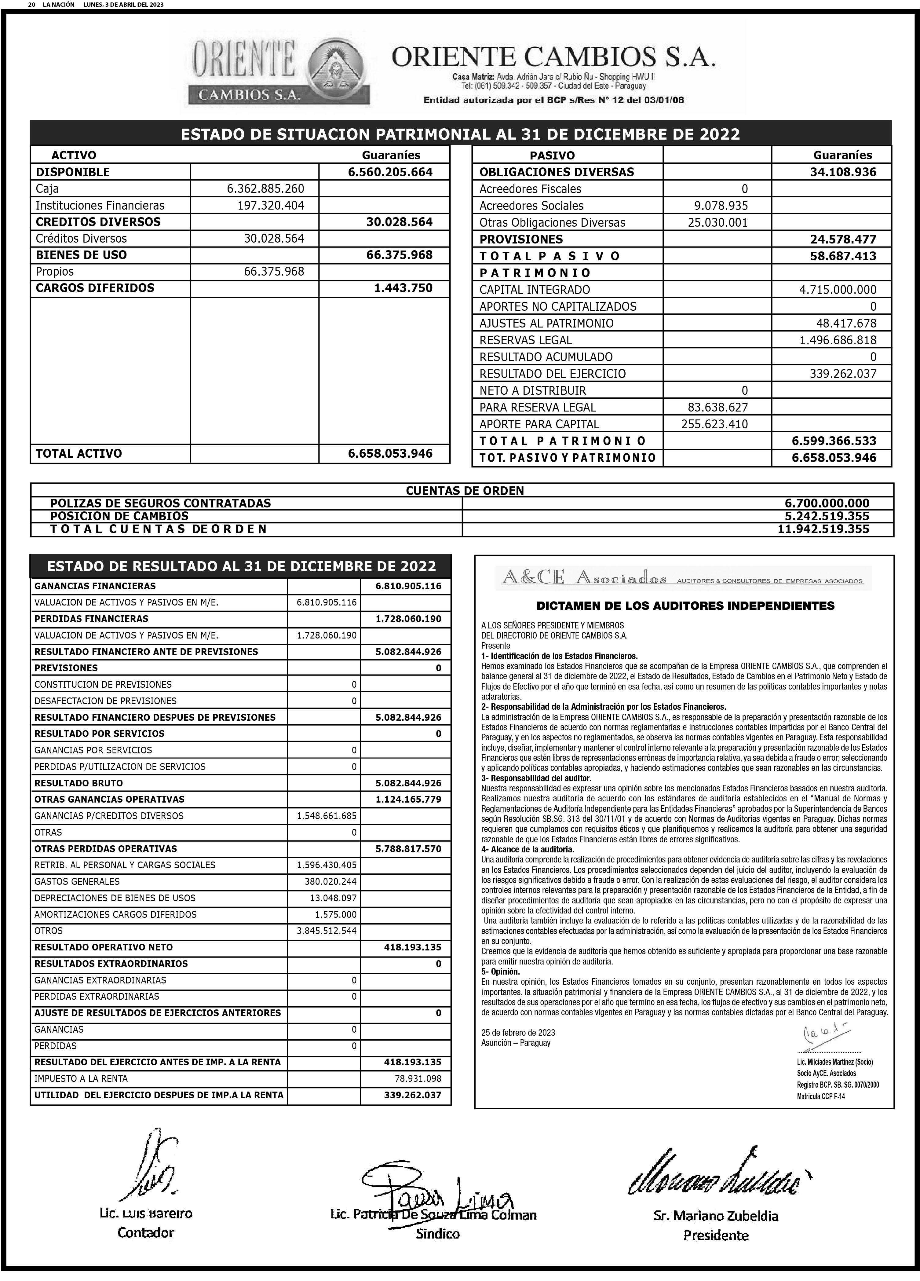 saber al destinatario de este edicto que el mismo cuenta con el Código QR, por lo cual, para tener certeza de que este documento es válido, deberá utilizar el lector del Código QR, siendo ya en consecuencia, innecesaria la autenticación. Asunción, 20 de marzo de 2023.-46483/03/04.-