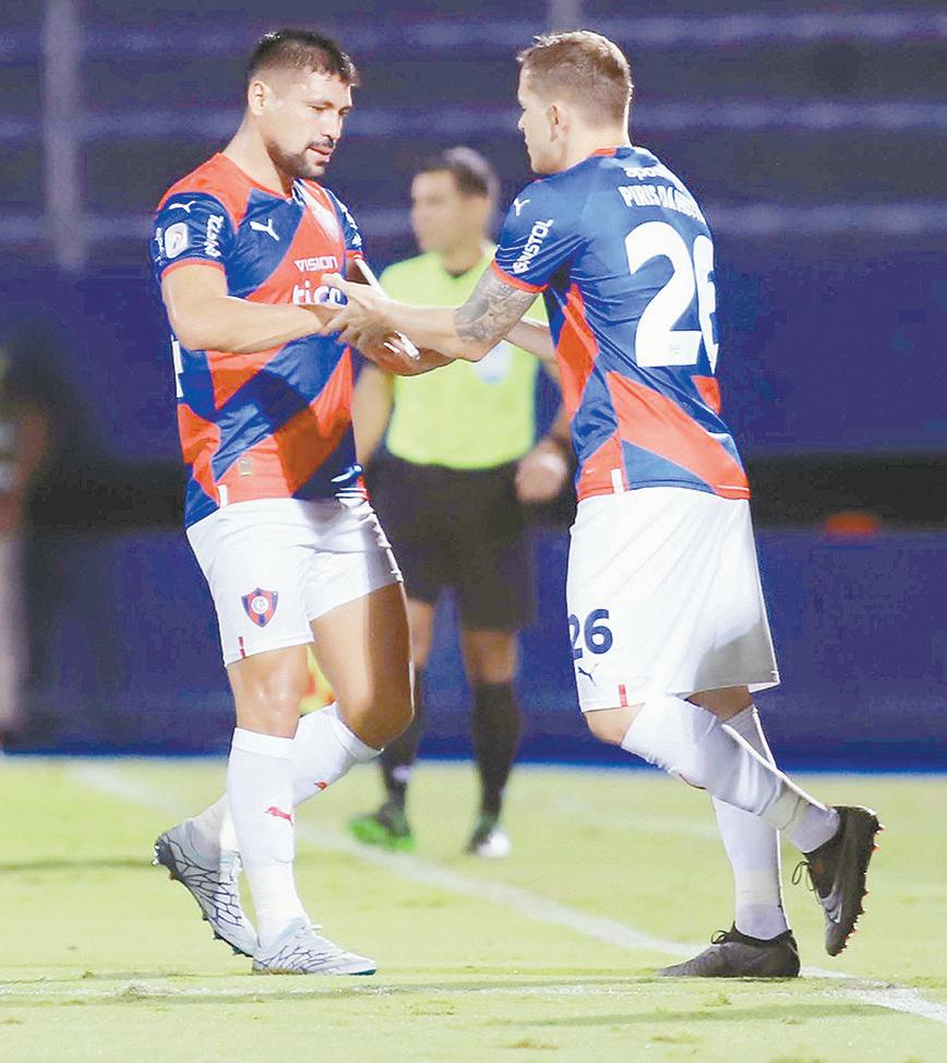 Néstor Camacho festeja su conquista con Rodrigo Amarilla.